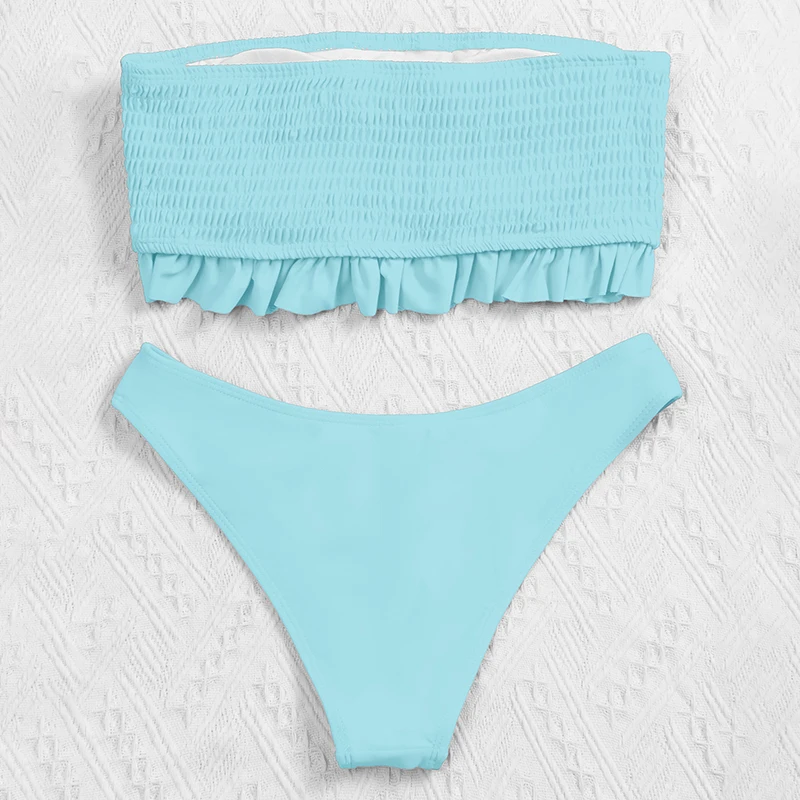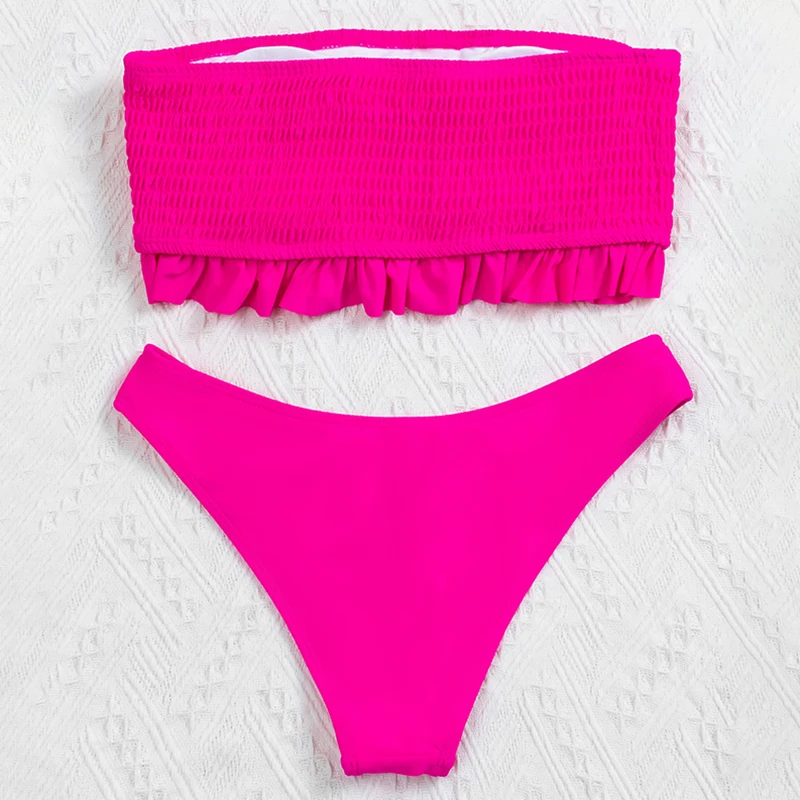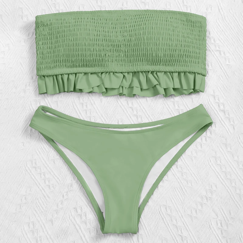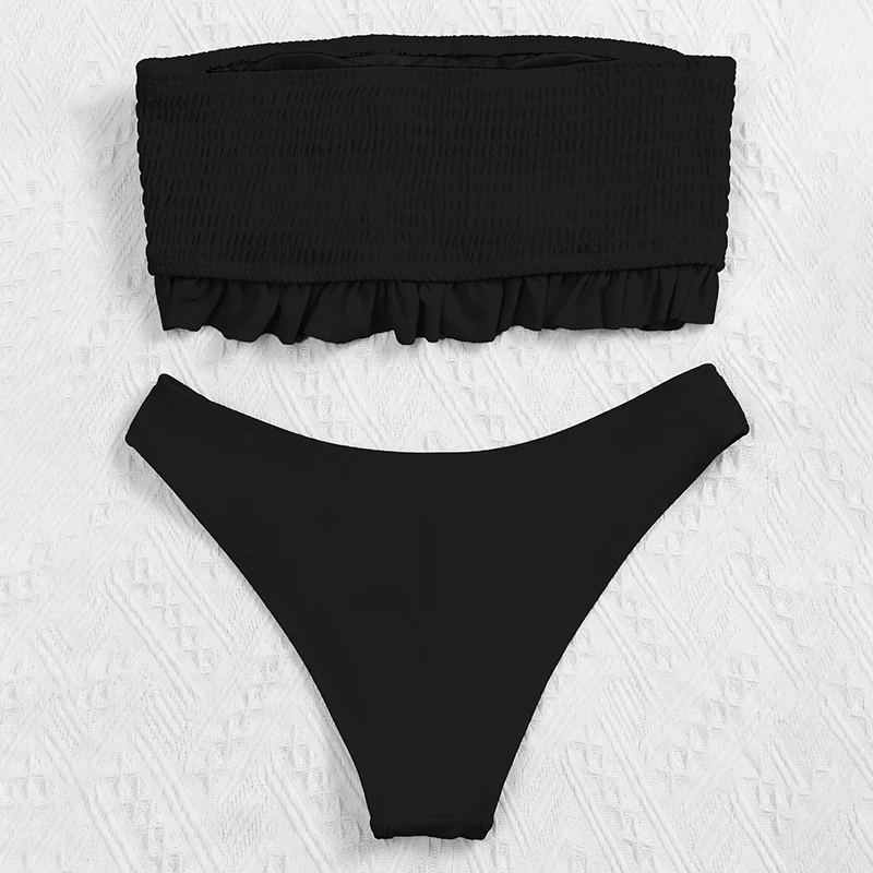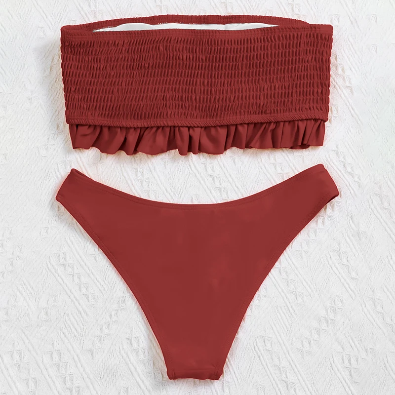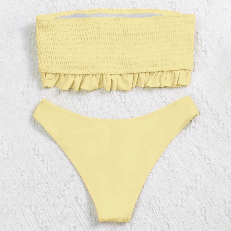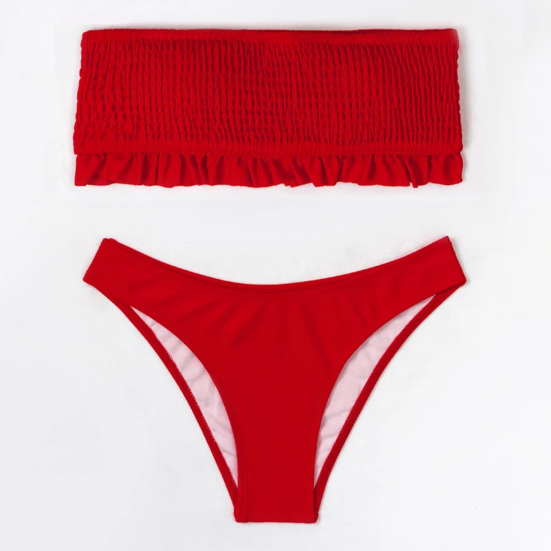 2021 сексуальный купальник-бандо, женский купальник с оборками, Женский комплект бикини пуш-ап, пляжный купальный костюм, летнее бикини
