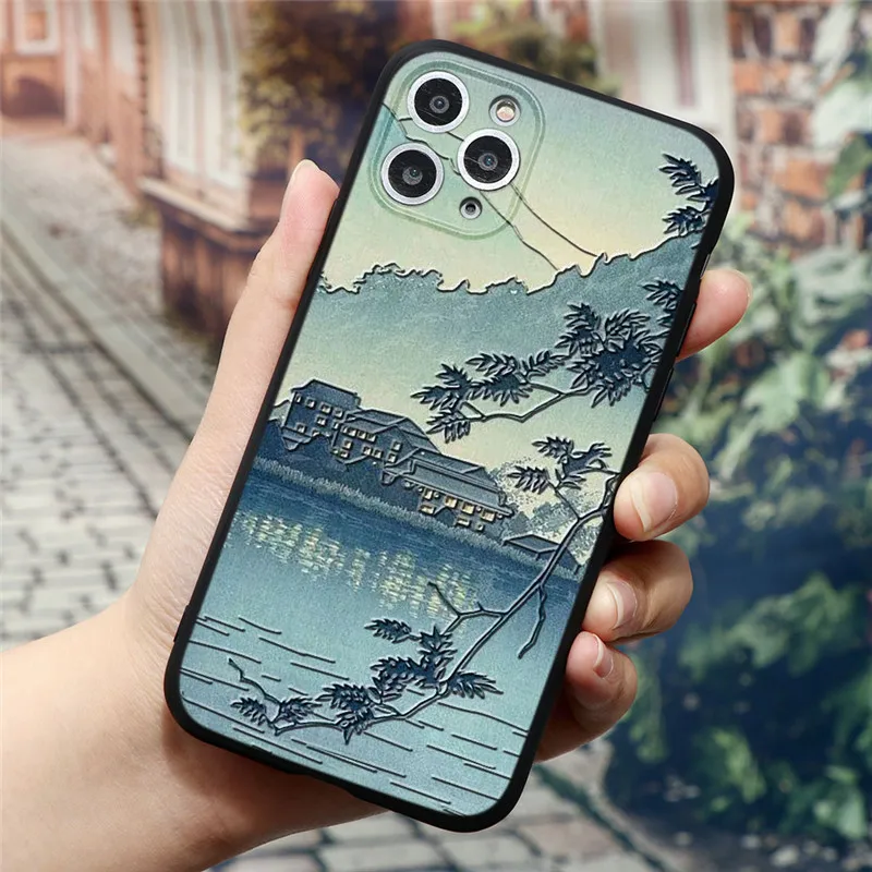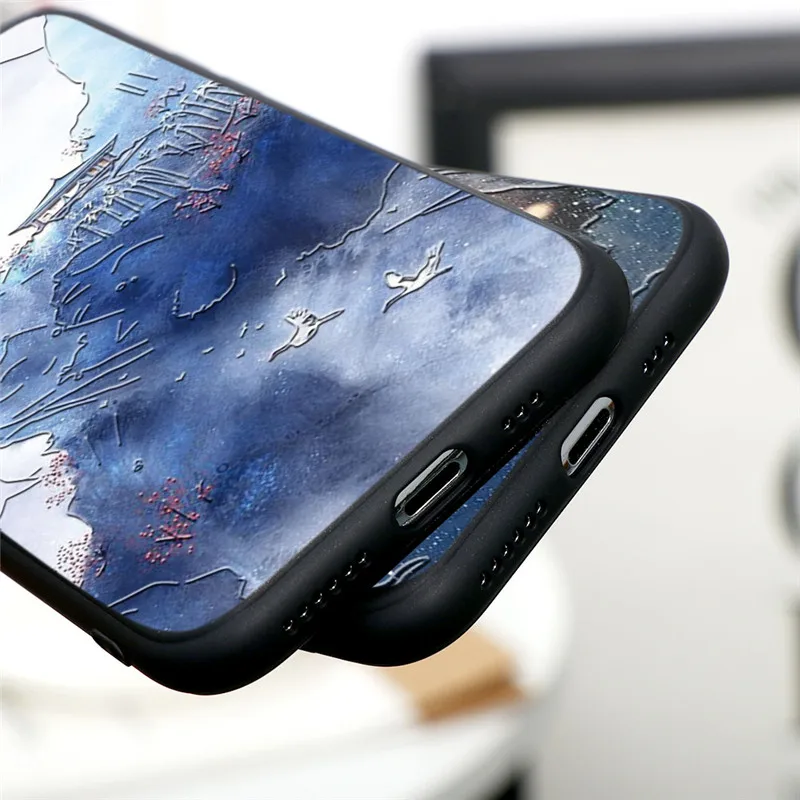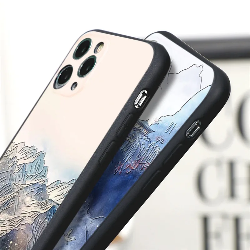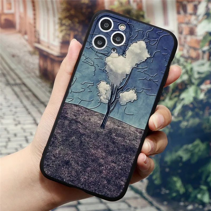 Мягкий чехол для телефона с 3D тиснением гор и деревом для iPhone 1...