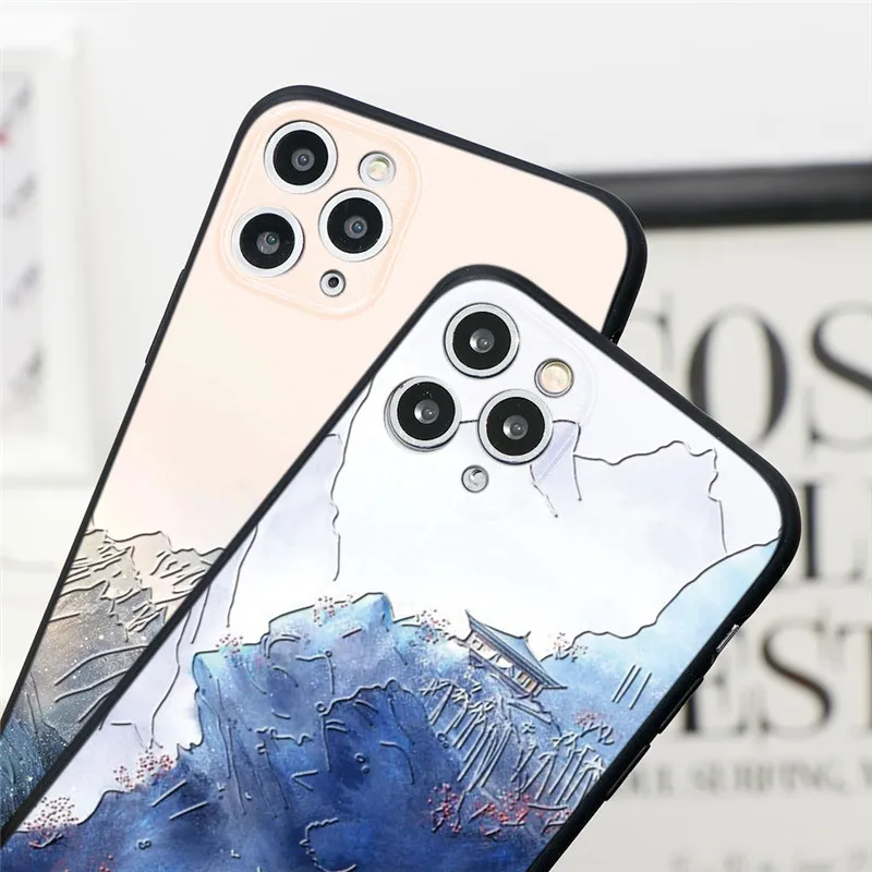 3D рельефный горный чехол для iPhone 7 8 Plus 6 6s X XR XS Max TPU задняя крышка для iPhone SE 2020 5 s 12 Mini 11 Pro Max Funda Case