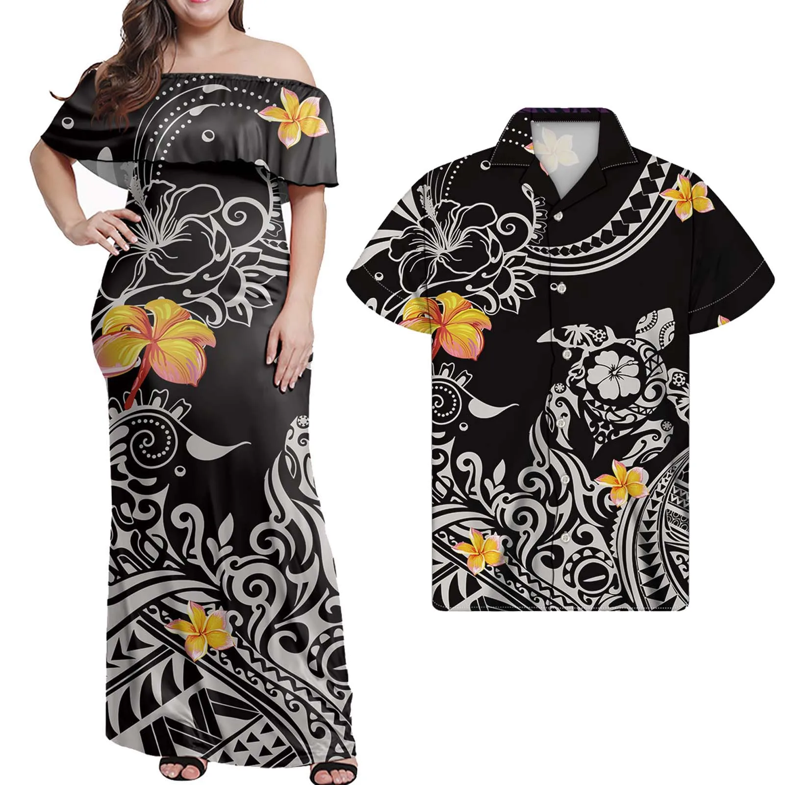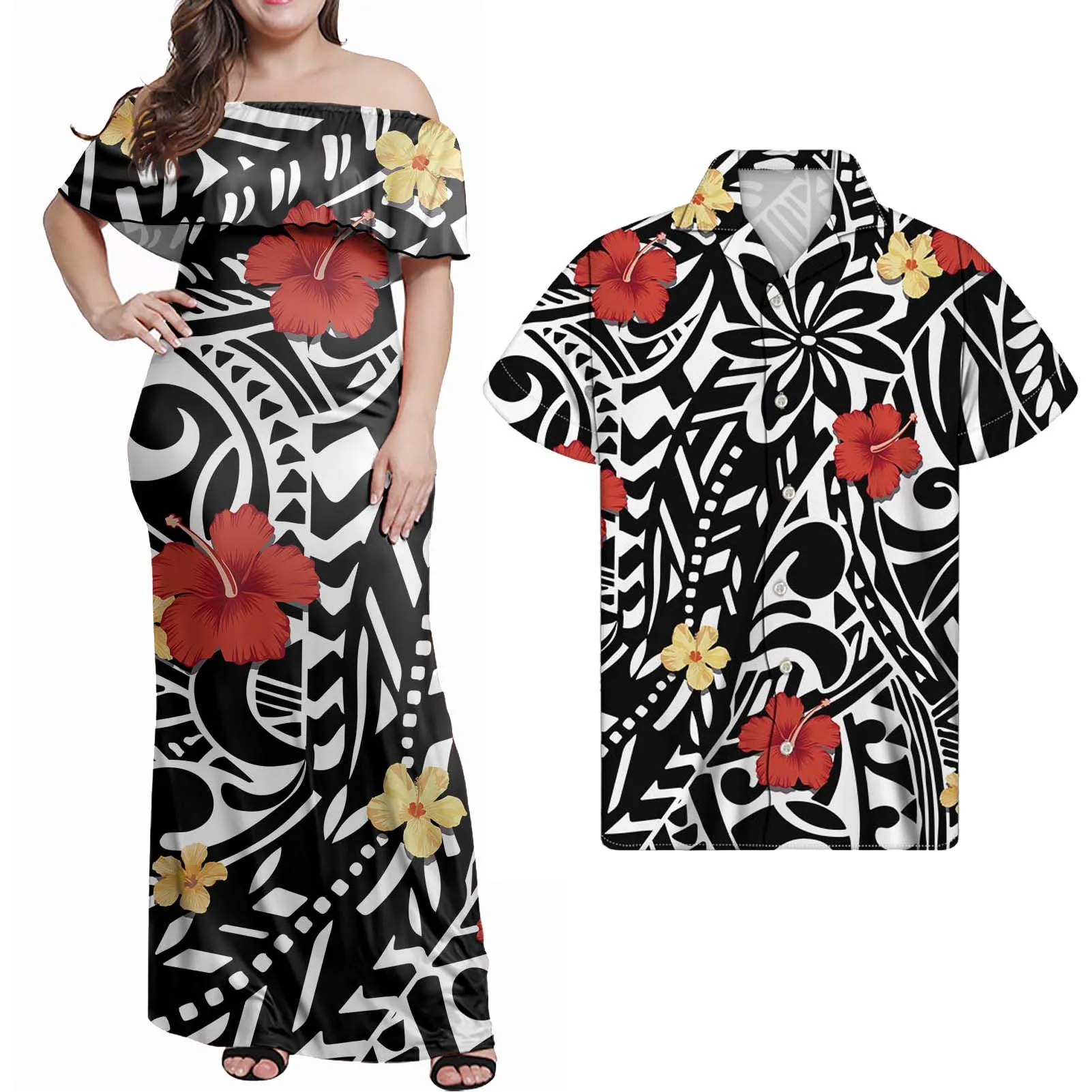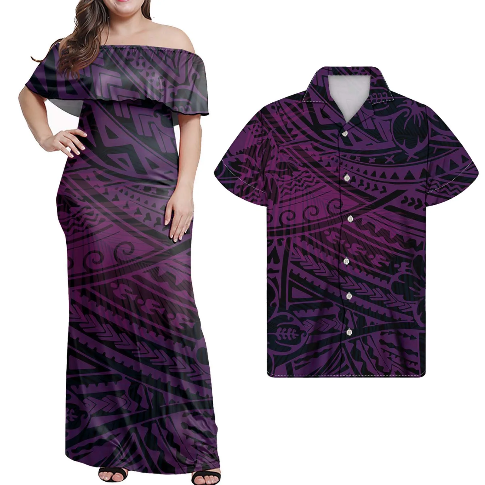 Hycool фиолетовые пикантные размера плюс без бретелек Для женщин Открытое платье без рукавов, племя Повседневное с открытыми плечами пара одежда 5xl Гавайская мужская рубашка