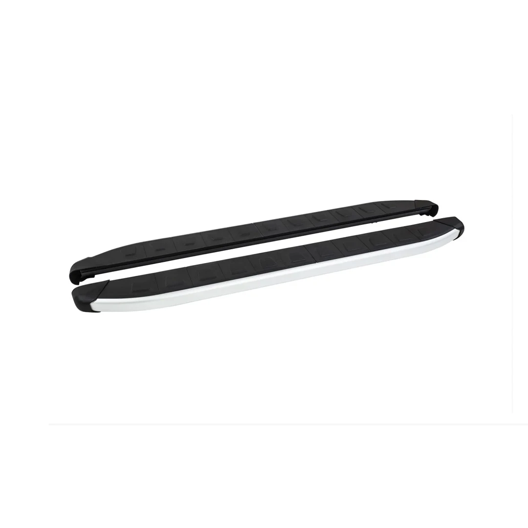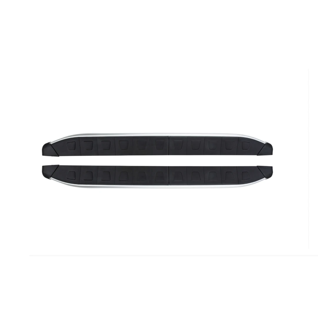 Хромированная труба с черной пластиковой накладкой сверху. Усиленные пороги с двумя листами анодированного алюминия в основе. Серебристый край порога так же выполнен из анодированного алюминия, что сохраняет его вид и защищает от повреждений. Накладки из АБС-пластика сверху препятствуют скольжению ноги. Рекомендованная грузоподъемность - 160 кг.