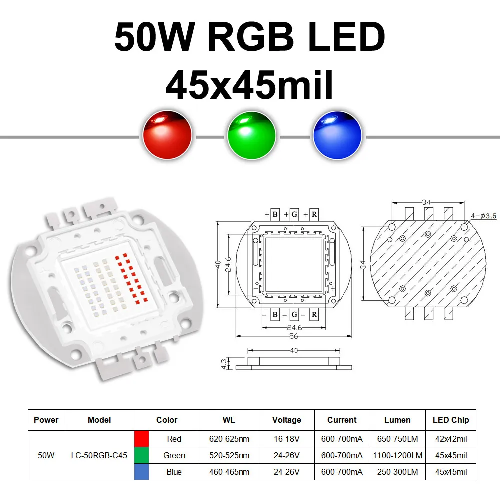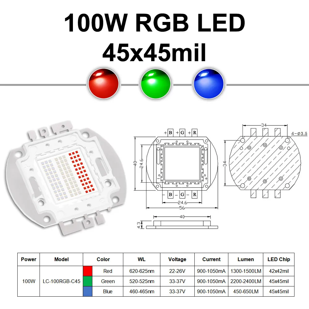 Светодиодный чип RGB высокой мощности, 100 Вт, красный, зеленый и с...