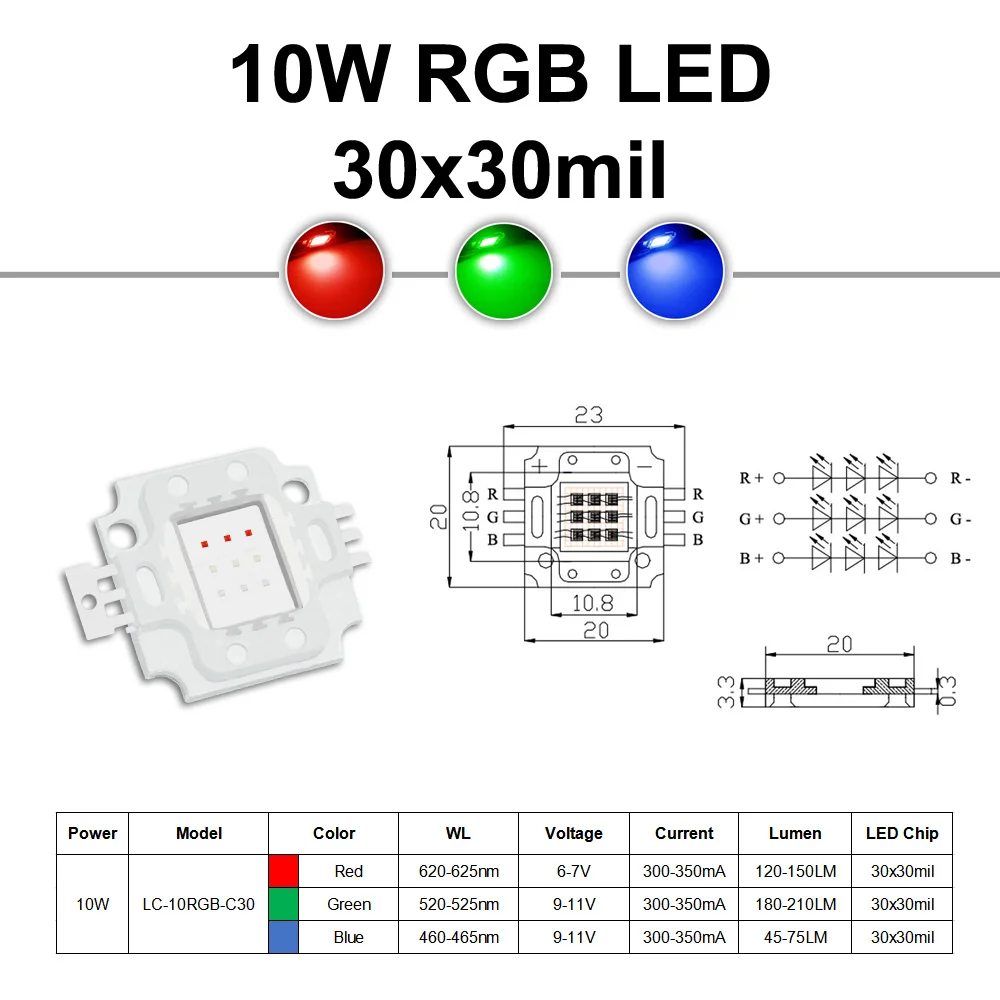 Светодиодный чип COB высокой мощности, 10 Вт, RGB, красный, зеленый...