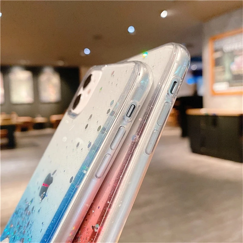 Прозрачный блестящий чехол для телефона iPhone 12 Pro Mini 11 Pro Max XS Max XR X 7 8 Plus SE 2020 градиентные Радужные Блестки мягкий чехол из ТПУ