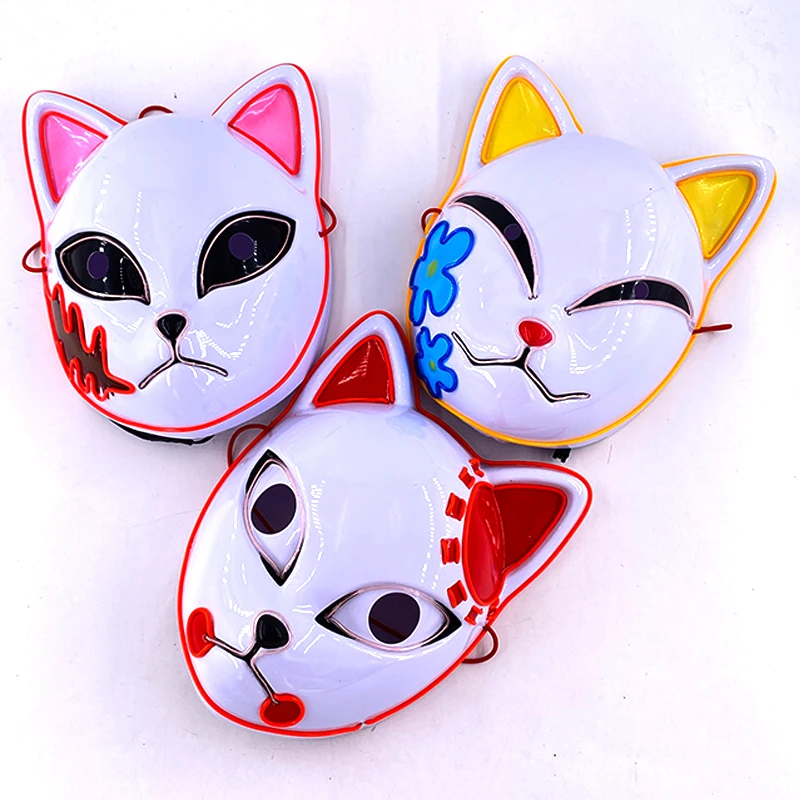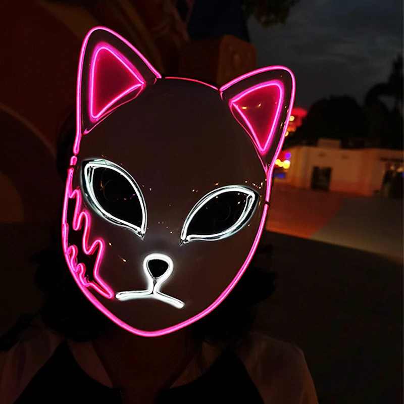 St женская маска для лица EL, неоновый светильник, маска для косплея лисы кролика, сексуальные карнавальные вечерние светодиодные маски для аниме Expro Хэллоуин