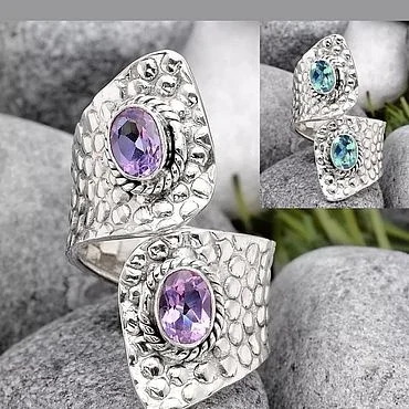 Материал кольца: медь, фиолетовый драгоценный камень, небесно-голубой драгоценный камень