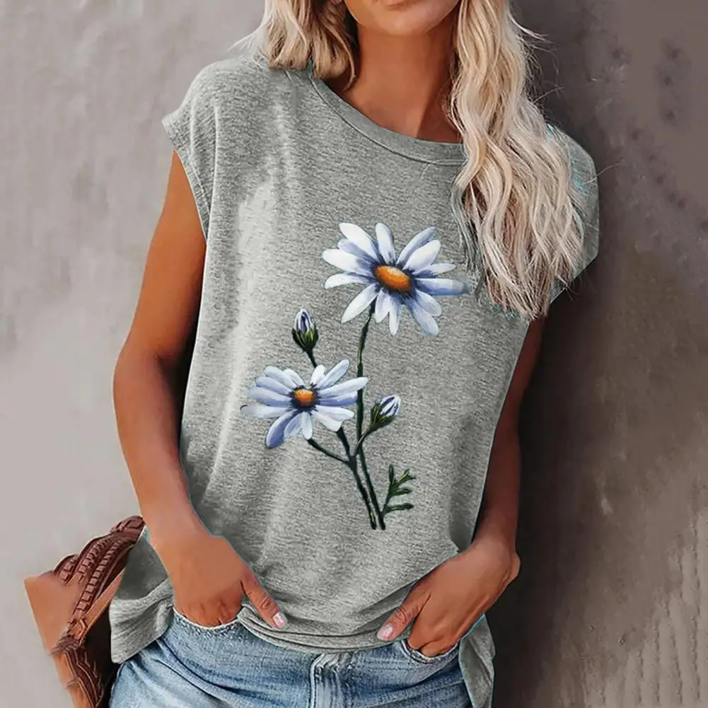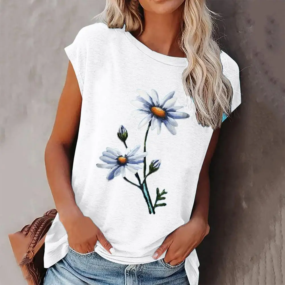 Футболка женская с коротким рукавом и круглым вырезом, Уличная Повседневная рубашка с цветочным принтом, уличная одежда, на лето