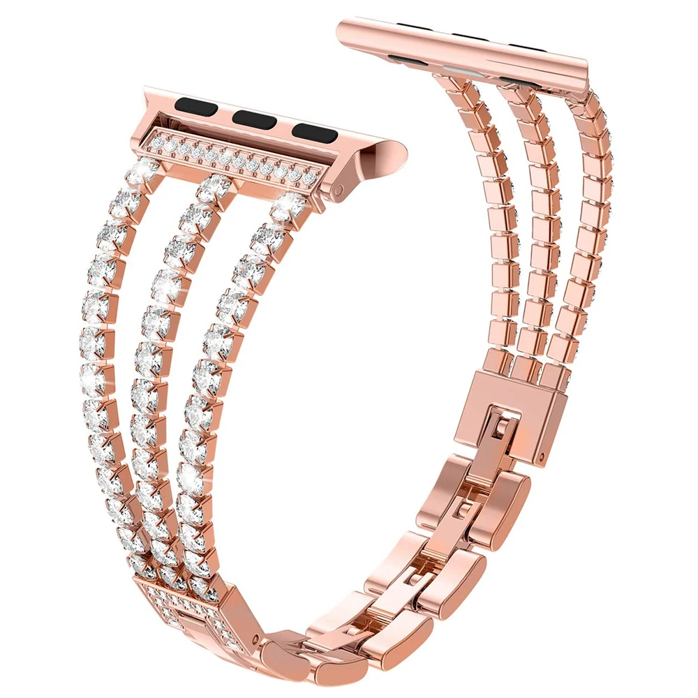 Женские ремешок для наручных часов Apple Watch, версии полосы 38 мм 42 мм Браслет замена наручных часов iWatch серии SE 6 5 4 40 мм 44 ремень блестящие розово-золотой