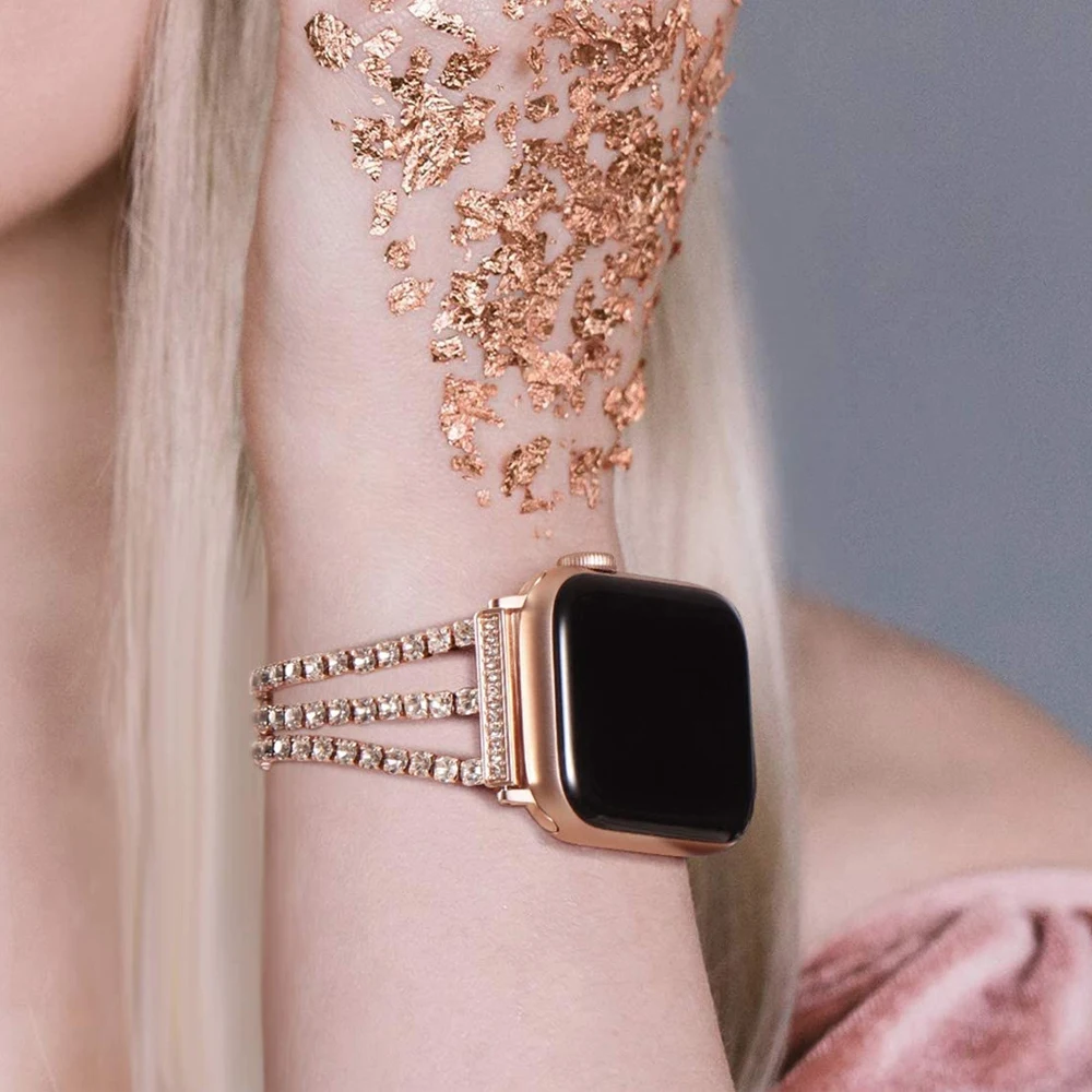 Металлический ремешок Bling для Apple Watch 6 SE, 40 мм, 44 мм, юве...