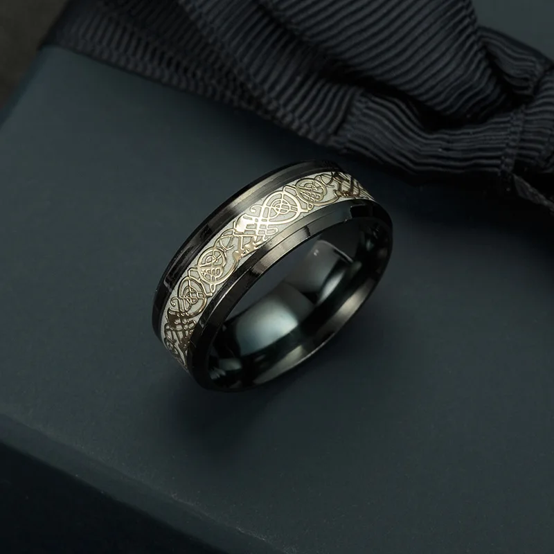 Модные Светящиеся женские ювелирные изделия темно-золотой дракон инкрустированный зеленый фон модное мужское ФЛУОРЕСЦЕНТНОЕ светящееся кольцо изысканный подарок