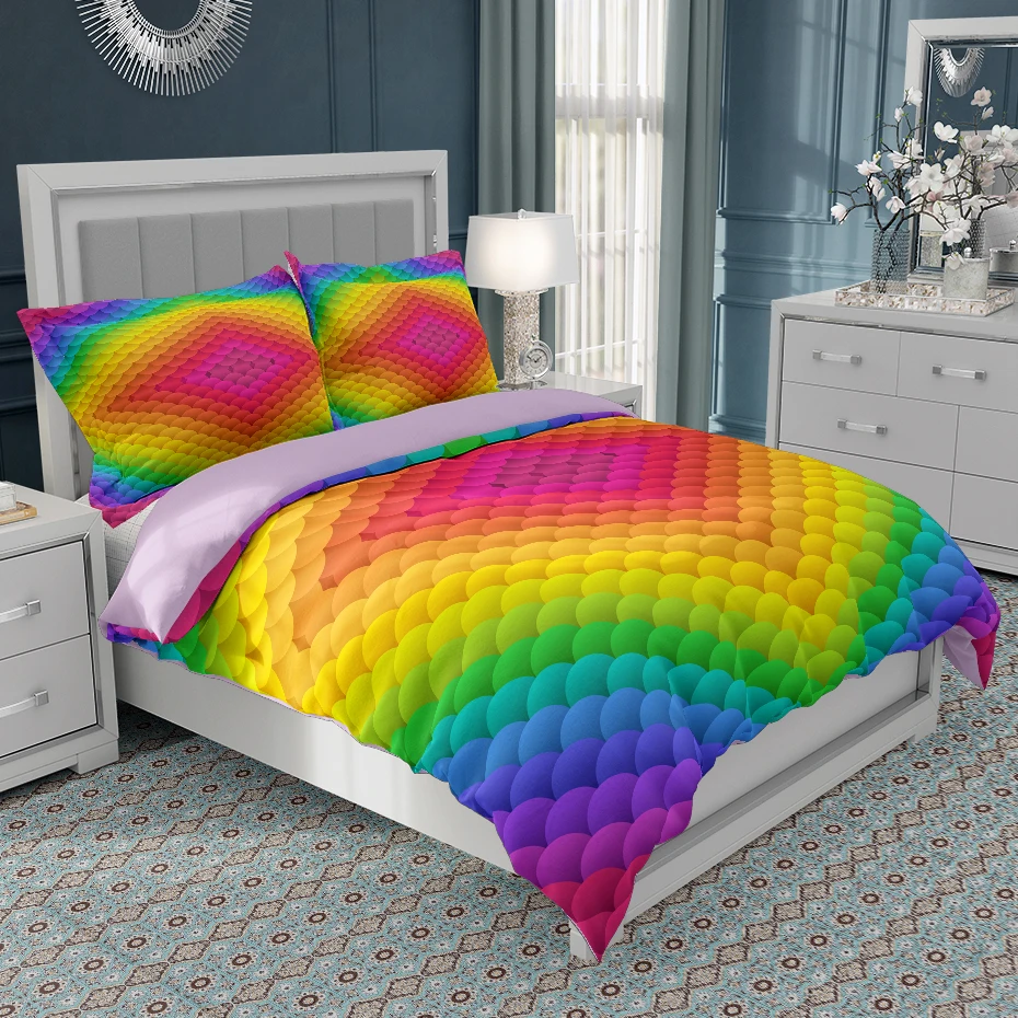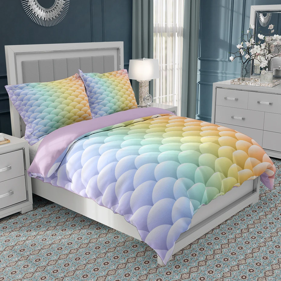 Комплект постельного белья с чешуей русалки, Роскошный розовый, фиолетовый, на 2 персоны, для влюбленных, 240*220, пододеяльник одеяло с геометрическими узорами, покрывало King, Queen