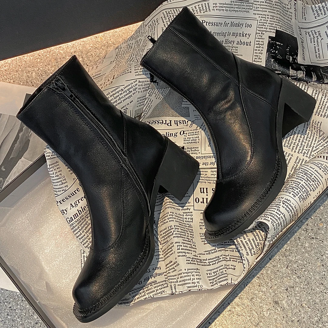 Женские ботинки из натуральной кожи, на шпильке, с боковой молнией,...