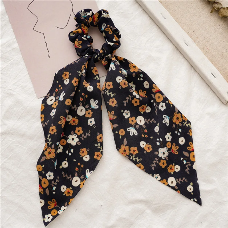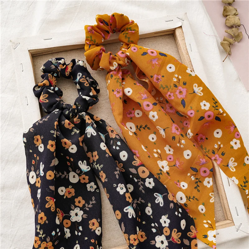 Новинка 2021, модные шифоновые шелковые заколки с цветочным рисунком и бантиком, женские резинки для волос, резинки, аксессуары для волос с держателем для конского хвоста
