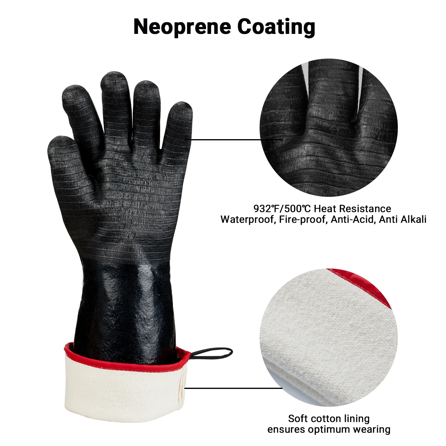 14 дюймов/18 дюймов перчатки для духовки неопреновое покрытие 932 ℃/500 ℃ термостойкость, водонепроницаемые, огнестойкие, антикислотные, антищелочные, защитные перчатки для барбекю, выпечки, садоводства, И промышленное использование