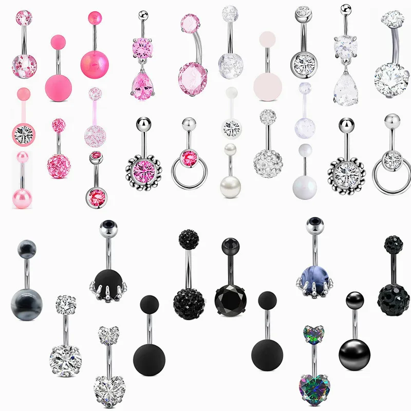 Кольцо для пирсинга пупка, из нержавеющей стали, с цирконами, 46812 шт.
