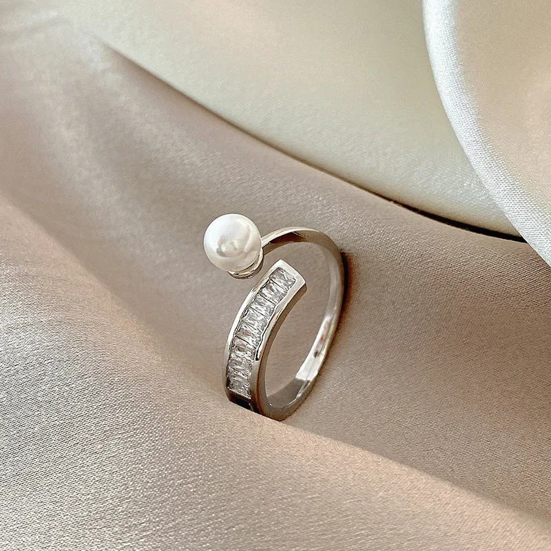 Женское регулируемое кольцо с жемчугом и цирконом, регулируемое