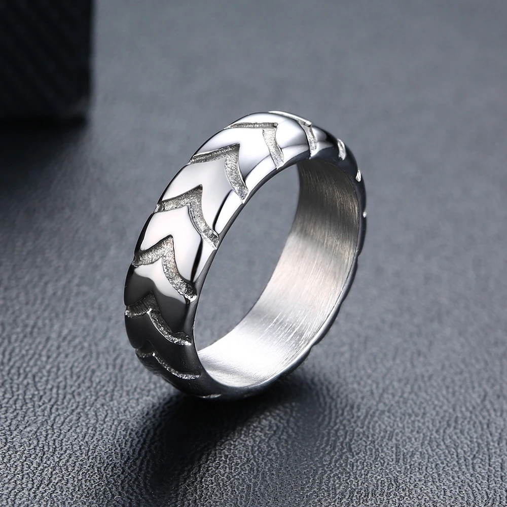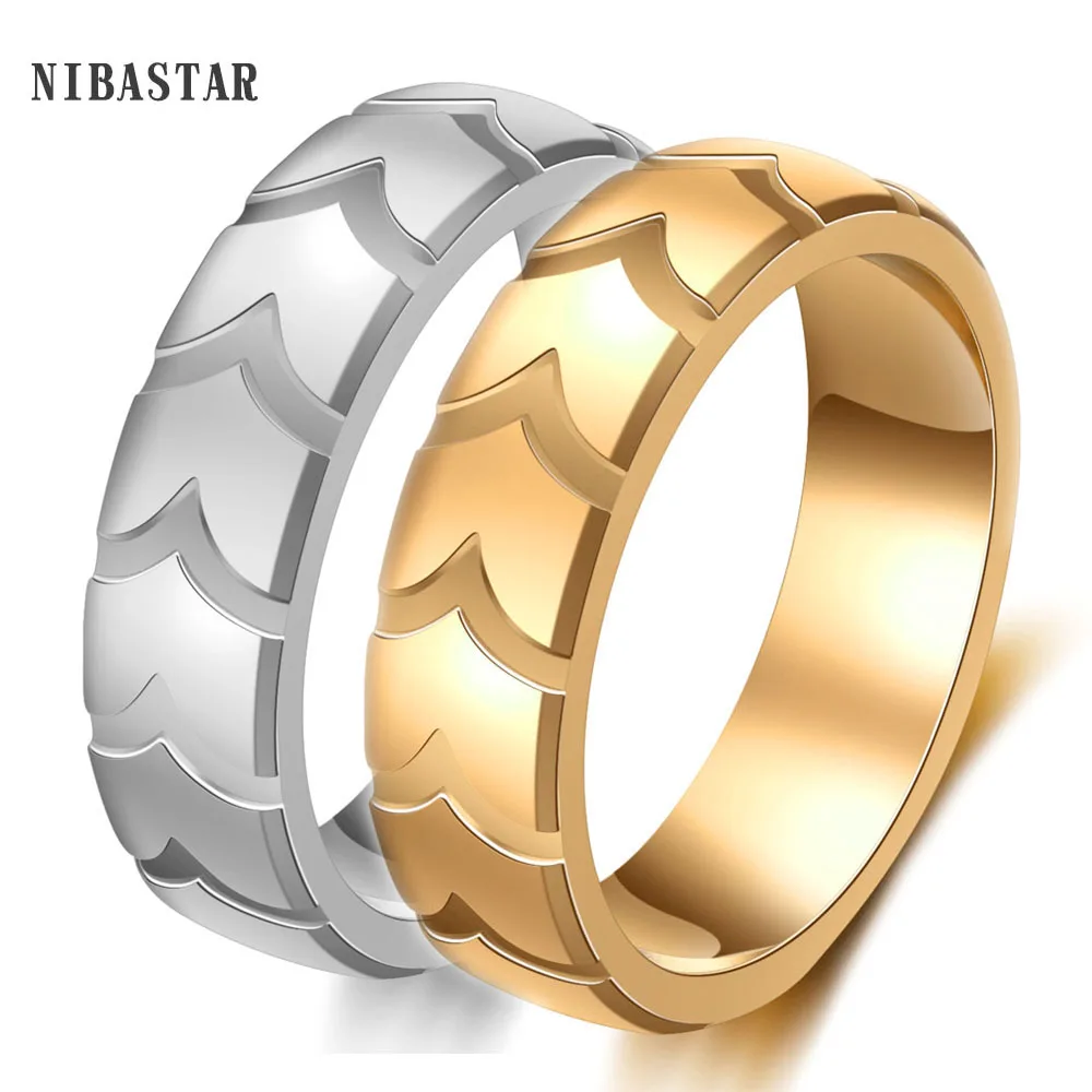 NIBASTAR шин узор кольцо для Для мужчин Нержавеющаясталь мужские панковские геометрические полосатый кольца для мужа Boyfriend, ювелирное изделие, подарок