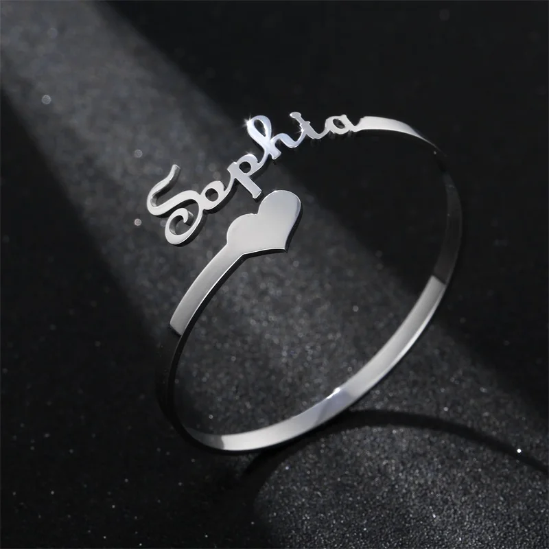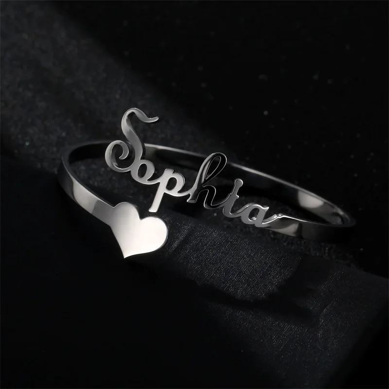 Индивидуальные регулируемые браслеты из нержавеющей стали золотого и серебряного цвета с именем влюбленных для женщин, браслет с именной табличкой на заказ