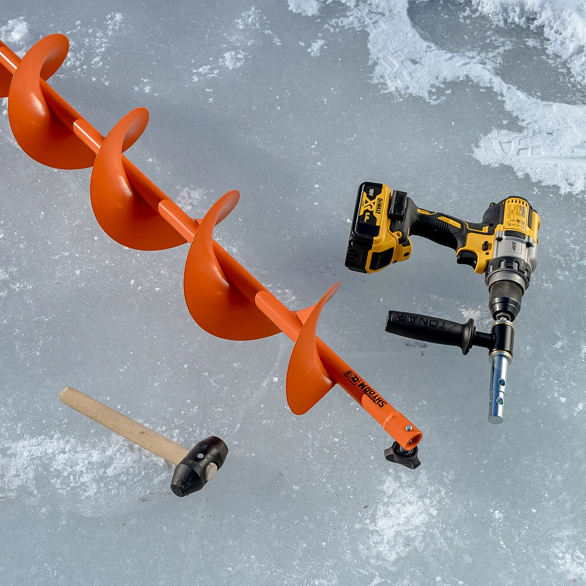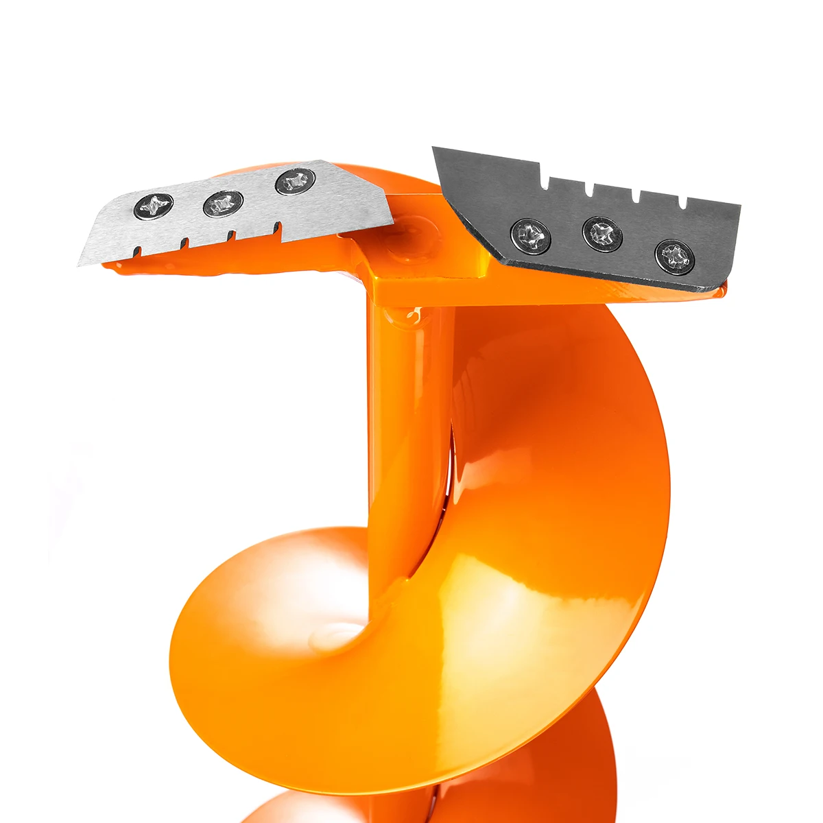 Цельнотянутый шнек с диаметром 180 мм и правым вращением предназначен для комфортного бурения льда с мото или электродвигателем в любых условиях. Выверенный угол атаки делает бурение быстрым. Надежное полимерное покрытие оранжевого цвета выдерживает резкие колебания температуры и сильные механические нагрузки. Весь цикл полимерной окраски деталей осуществляется на высокотехнологичном оборудовании европейского производства. Цвет продиктован выделением данной линейки шнеков от других ледобуров и шнеков производимых ГК Тонар.Шнек под мотобур Мотошторм создан для бурения при помощи мотобура или шуруповерта.Для присоединения шнека к валу мотобура необходимо использовать винт, шайбу и гайку, которые устанавливаются при помощи ключей S6 и S13 (в комплекте). Допускается присоединение к шнеку мотобуров с диаметром выходного вала от 18 до 20 мм.При присоединении шнека к шуруповерту необходимо использовать адаптер АШ-02 или АШ-03 (доп. опция) и винт-барашек М8 (в комплекте). Допускается присоединение к шнеку адаптеров с диаметром выходного вала от 18 до 20 мм.Для наилучшего результата при использовании мотобура или шуруповерта рекомендуем использовать ножи (арт. NLT-180R.SL.02) для правого вращения производства ГК ТОНАР.Если толщина льда более одного метра, то на шнек необходимо установить Удлинитель шнека УШМ-250 или УШМ-400, которые позволят увеличить глубину бурения на 25 и 40 см соответственно.Технические характеристики:Правое вращение.Диаметр бурения: 180 мм.