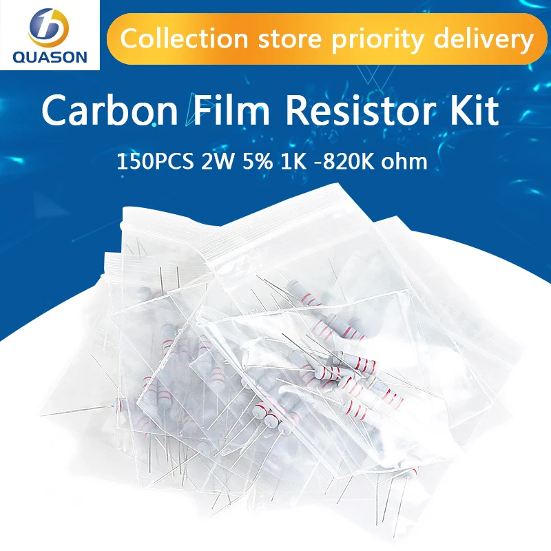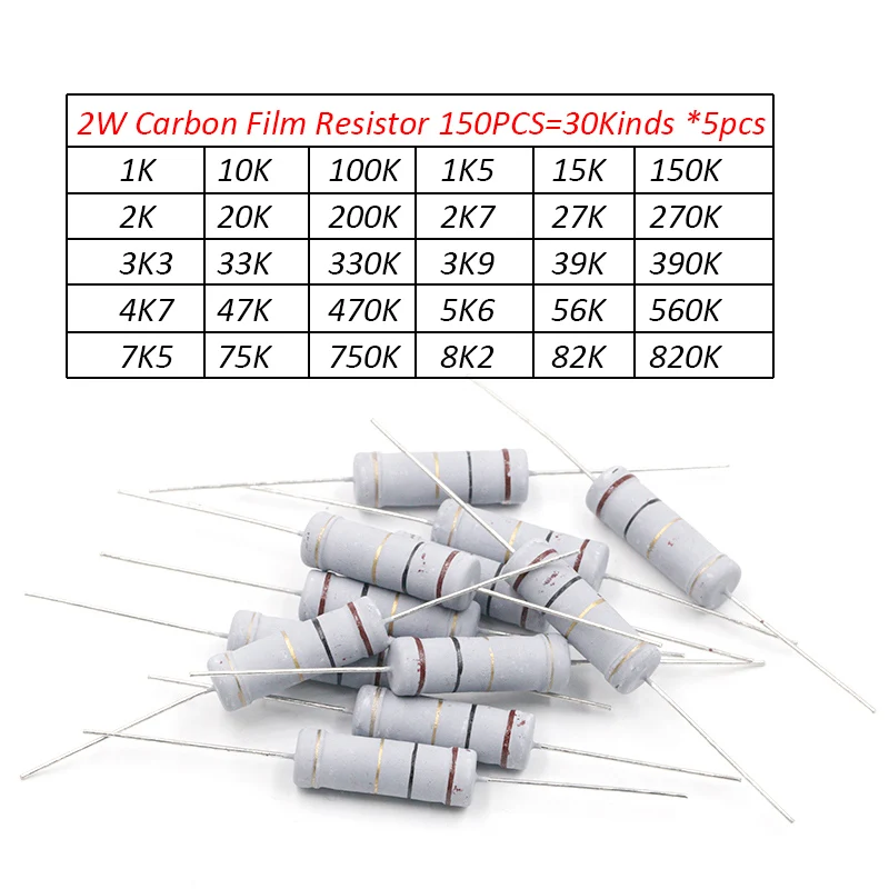 Новый набор карбоновых пленочных резисторов 2 Вт 5% 1K -820K Ом 30 видов * 5 шт. = 150 шт.компл.