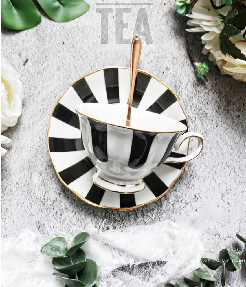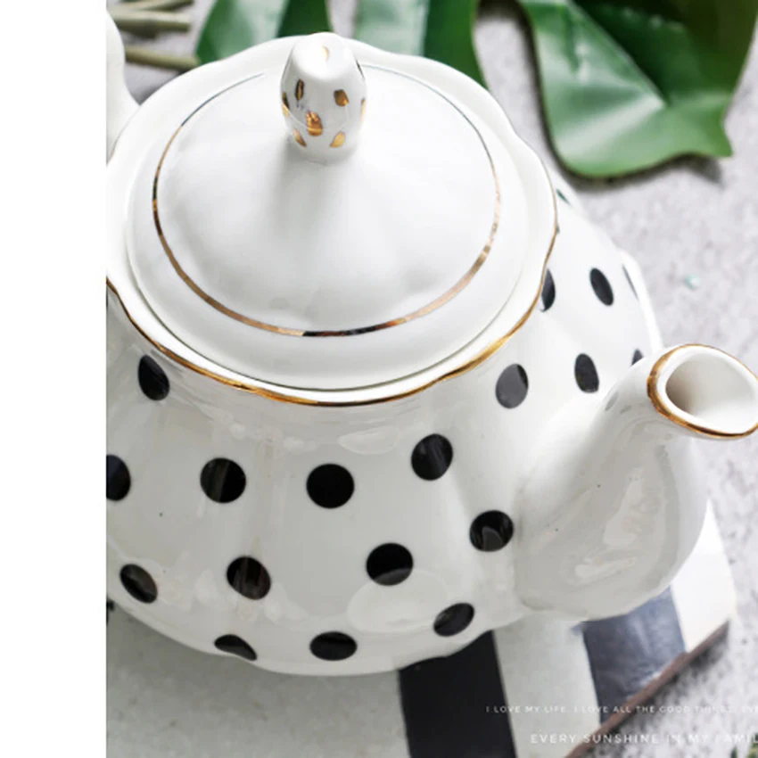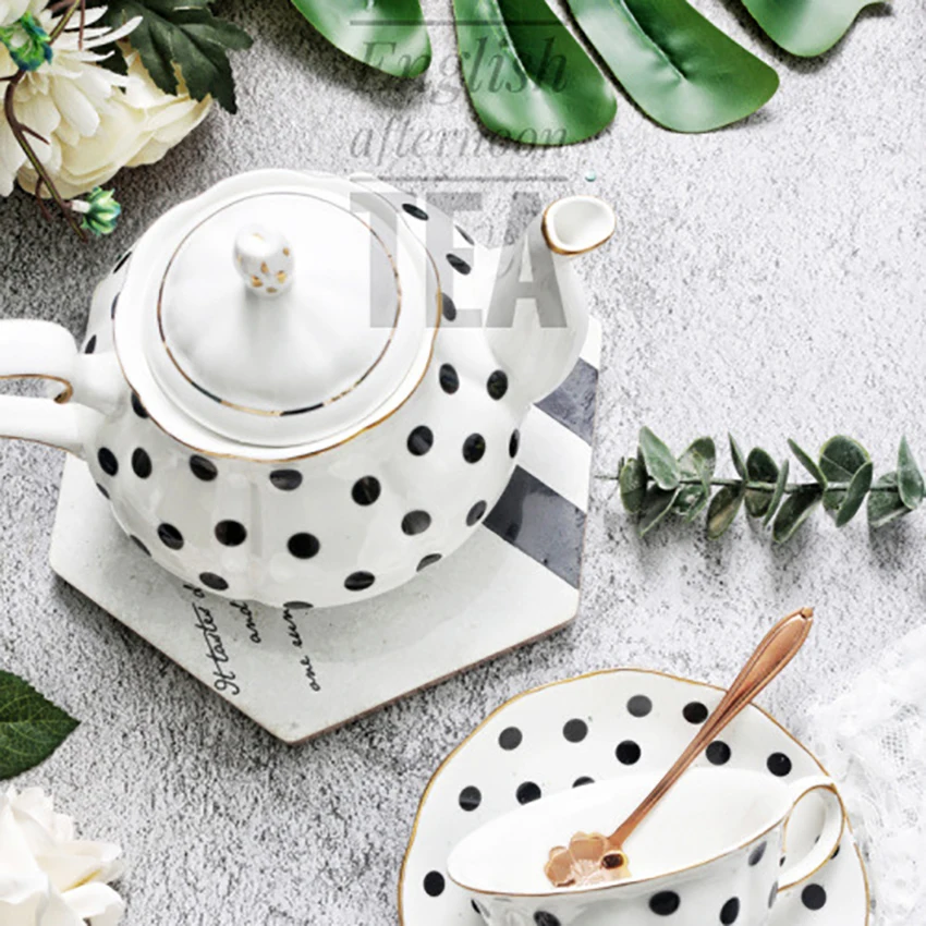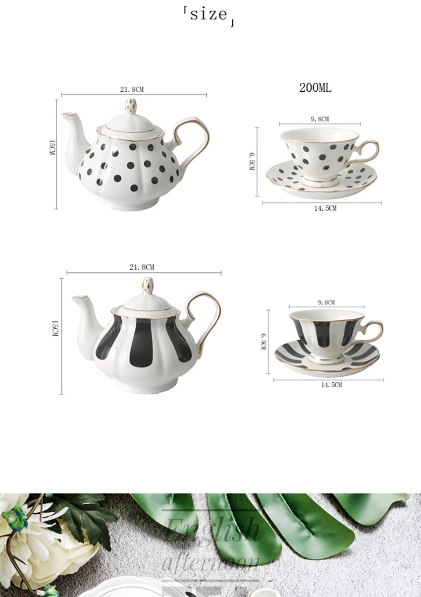 Керамические кофейные чайные чашки с блюдцами, черно-белые полосатыеточечные чашки и блюдца, чайный горшок с золотистыми полями для латте, чая