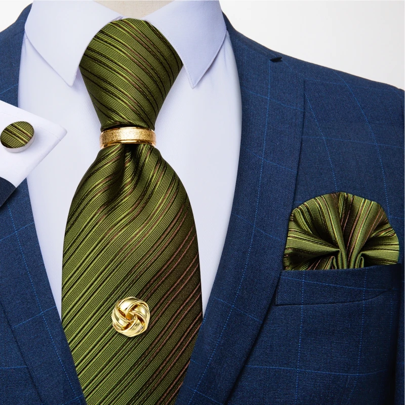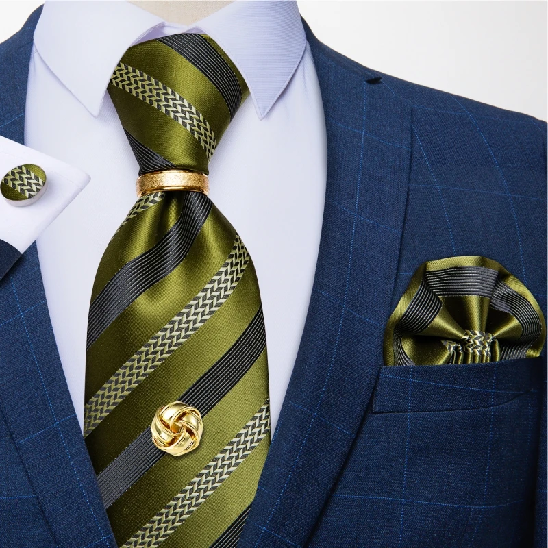 DiBanGu дизайнерский мужской галстук с зеленым узором Пейсли Полосатый Свадебный галстук для мужчин кольцо Hanky запонки шелковый галстук Набор для деловых вечеринок