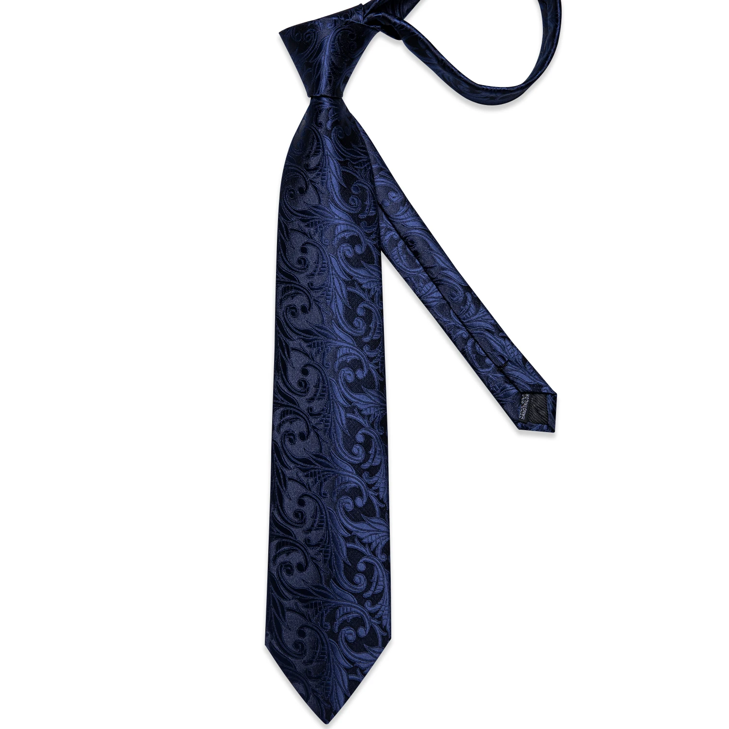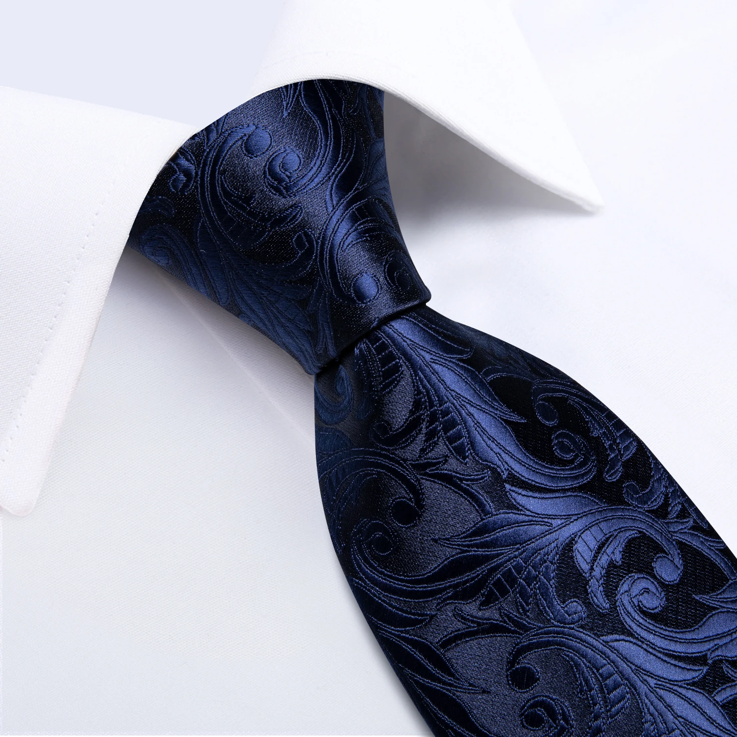 Роскошные Синие Цветочные Галстуки Пейсли для мужчин, Свадебный шейный галстук, платок, запонки, кольцо для галстука и галстук, подарочный набор для мужчин, DiBanGu