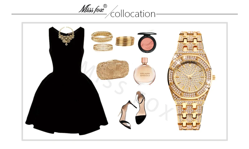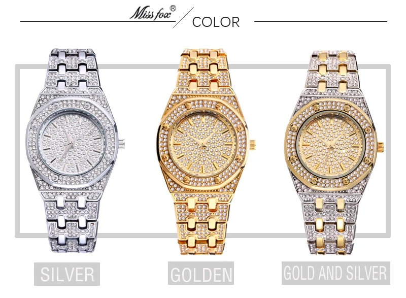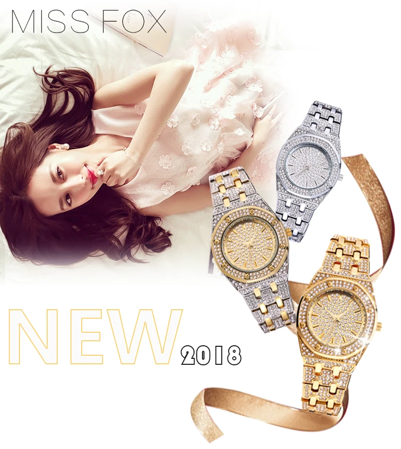 Роскошные женские часы MISSFOX, брендовые водонепроницаемые Золотые женские часы с блестящими бриллиантами, Самые продаваемые женские часы, подарки