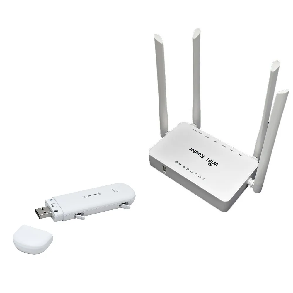 - Wi-Fi роутер ZBT WE1626 + 4G USB-модем ZTE MF79U (любая симкарта) + 2 пигтейла (переходник) TS9-F-female для подключения внешней антенны к USB-модему.