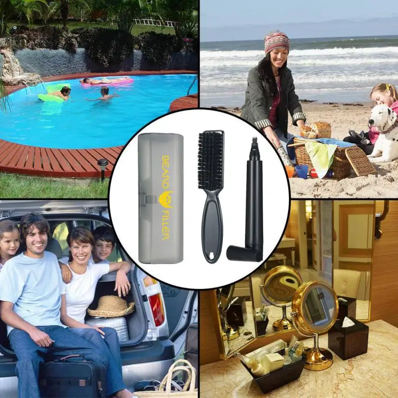 Ручка для бороды с четырьмя зубцами, кисть для бороды, водонепроницаемая Перекраска, щетка для разбивания волос, ручка для наполнения бороды, дорожная деловая пластиковая коробка TSLM1
