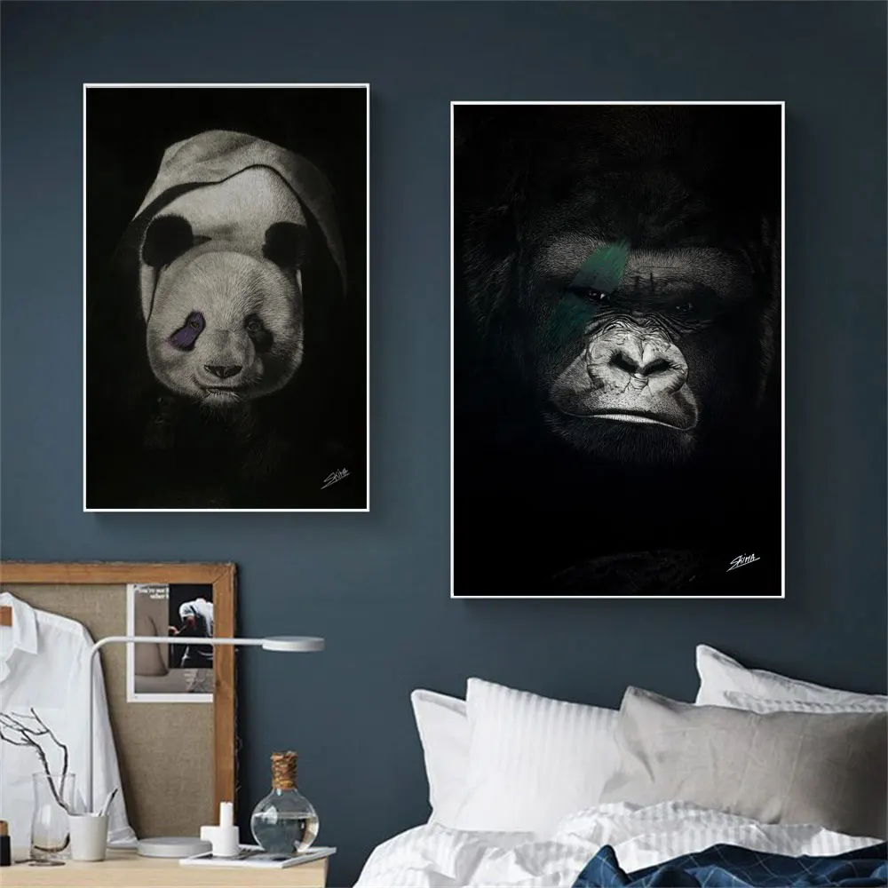 Современный Животные настенная живопись Плакаты и отпечатки настенная живопись на холсте черного цвета с принтом обезьяна картина "Панда" Куадрос декор для Гостиная