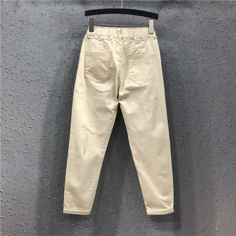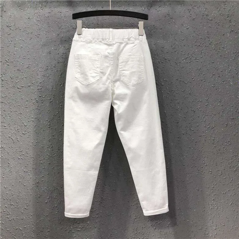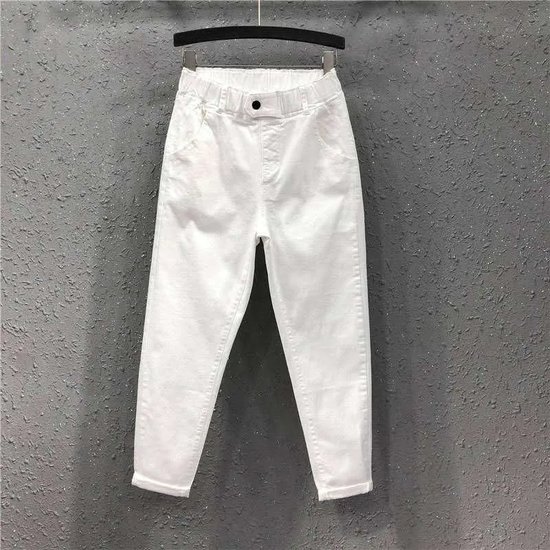 Женские брюки с эластичным поясом, Свободные повседневные белые джинсовые брюки, A408, весна-лето 2022