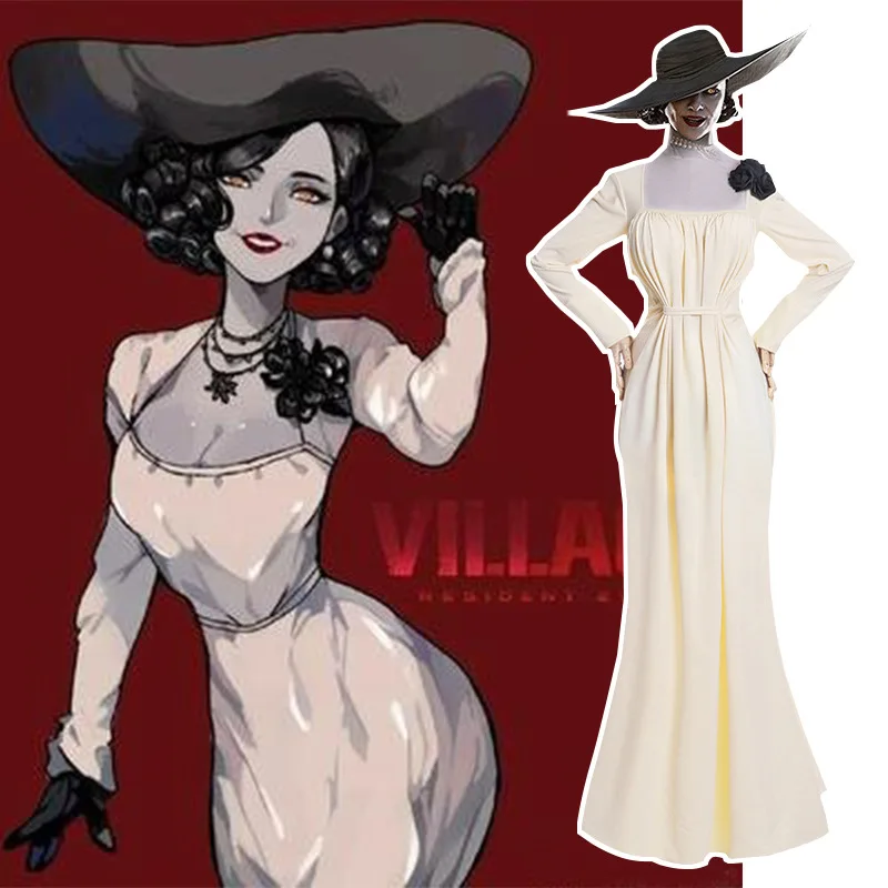 Alcina Dimitrescu костюмы для косплея для женщин белое платье костю...