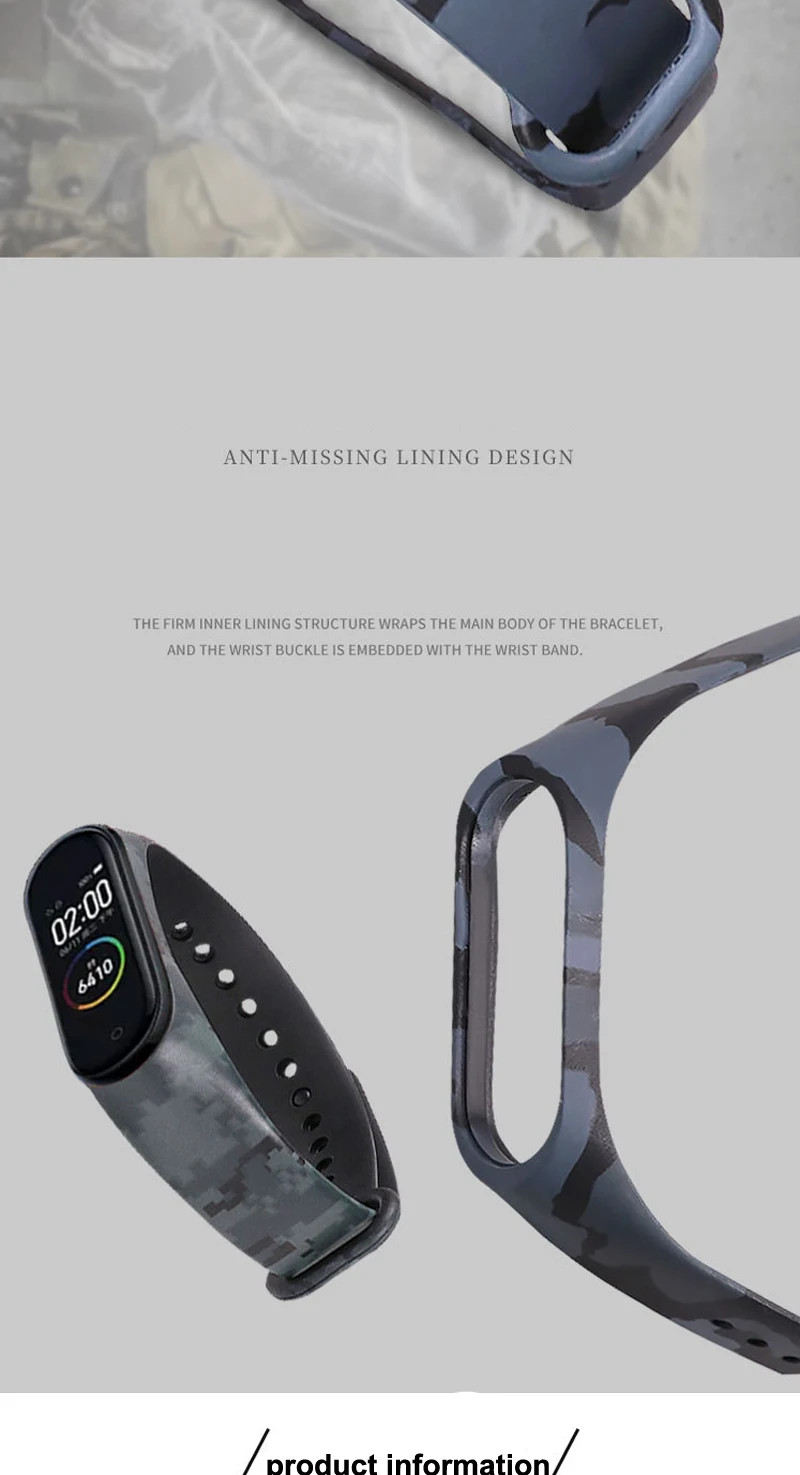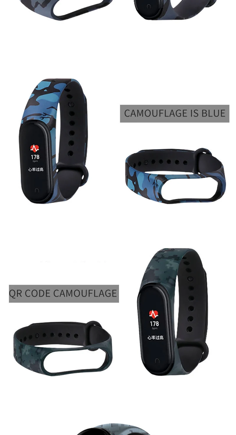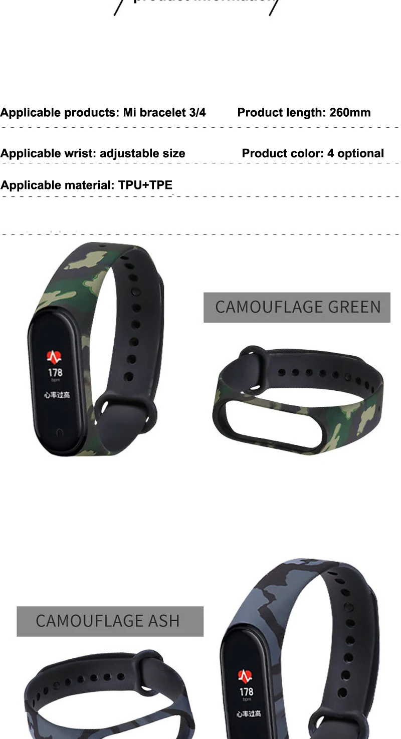 Камуфляжный браслет для Xiaomi Mi Band 3 4 силиконовый спортивный браслет mi band 4 Band 3 SmartBand наручный ремешок для Xiaomi Miband 3 4Описание:-Материал ремешка: силикон-100% модный новый бренд высокого качества-Спортивный ремешок для XIAOMI MI Band 3 / 4-Хорошая замена цвету вашего браслета-Цвет: как показано на картинке (по желанию)-Водонепроницаемый и пыленепроницаемый-Изготовлен из высококачественного, экологичного и здорового-Удобно носить-Улучшенные товары для спорта и фитнесаУпаковка включает в себя:1 * спортивный силиконовый наручный браслет (не часы)