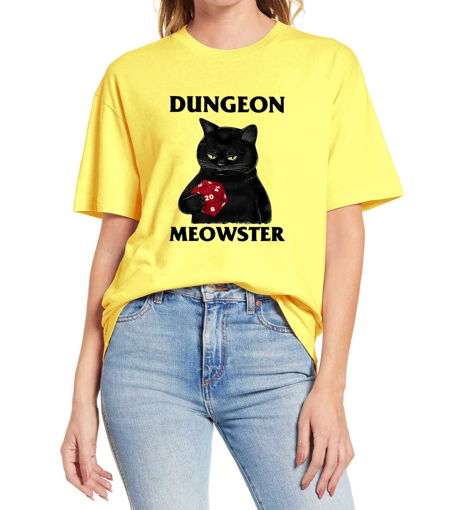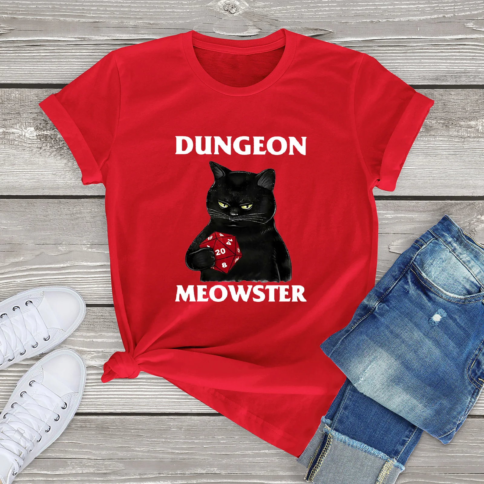 Забавная Новинка, винтажная женская рубашка Dungeon Meowster с изображением черной кошки, забавная футболка унисекс с коротким рукавом, Мультяшные топы из 100% хлопка