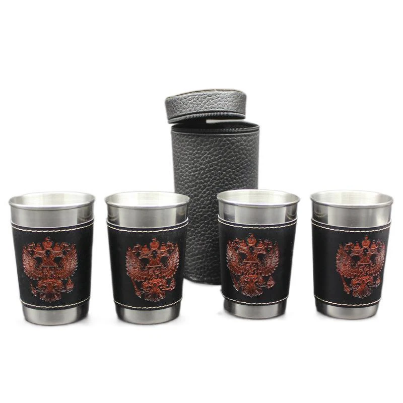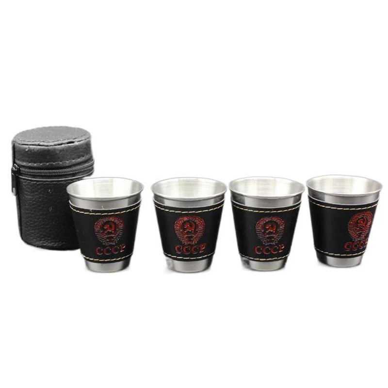 4 шт.лот 70 мл Посуда для кемпинга на открытом воздухе набор дорожных чашек принадлежности для пикника чашка из нержавеющей стали для вина пива виски кружки из искусственной кожи