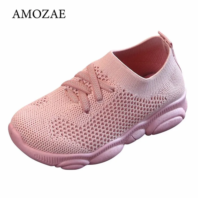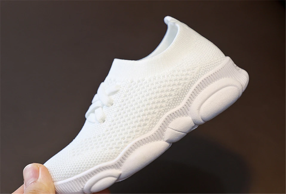 Новинка 2022, детские кроссовки, модная детская обувь на плоской подошве для младенцев, маленьких девочек и мальчиков, Однотонные эластичные сетчатые кроссовки, обувь для бега