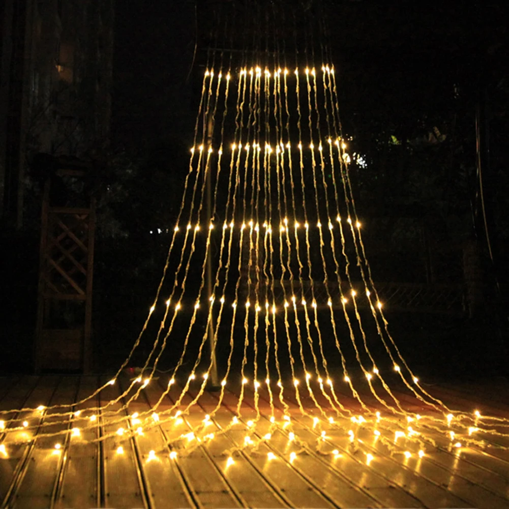 Водопад гирлянды, 3X3M/ 6X3M расхода воды, защищают от снега, для катания на эффект занавес Фея Lighs висит с пересекающимися мигающими звездами гирляндой для вечерние свадебные Рождество патио для дома и улицы декоративная поток воды огни