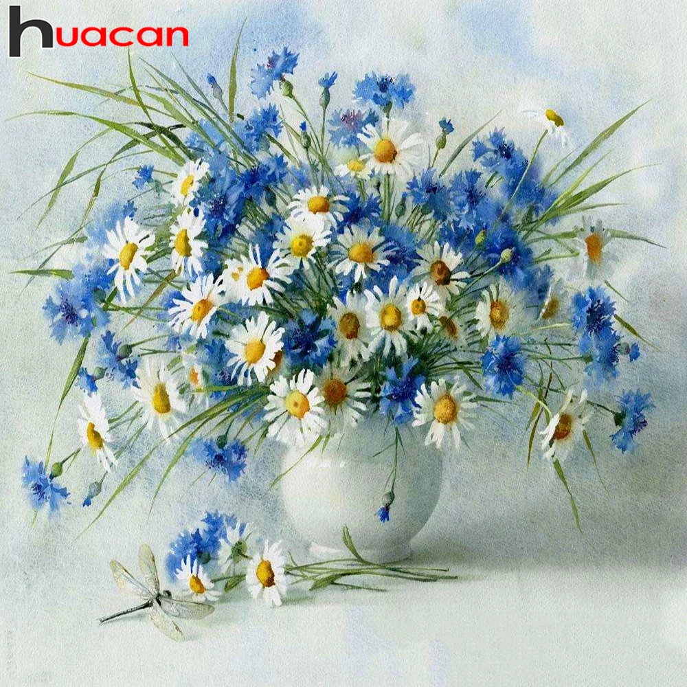 Алмазная живопись Huacan 5D, стежка-Маргаритка ваза с бриллиантовой мозаикой, вышивка с цветами, Подарочные Картины для интерьера, настенное искусство
