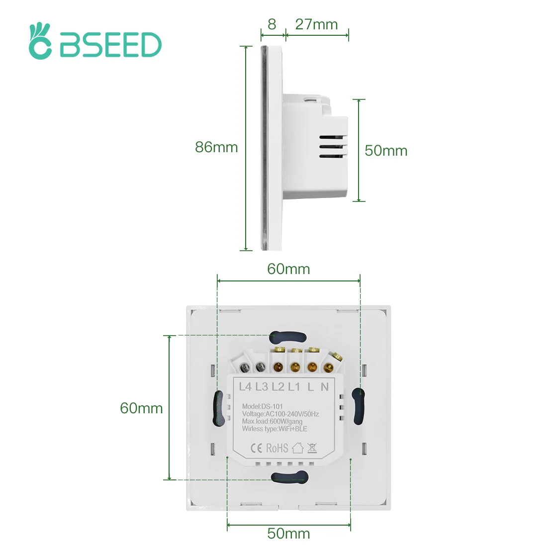 BSEED Wifi светильник переключатели 2 предмета в комплекте, 2 комплекта, 1/2/3/4 способ светодиодный сенсорный Сенсор выключатель Smart Настенные переключатели стекло Google Alexa Управление 10A