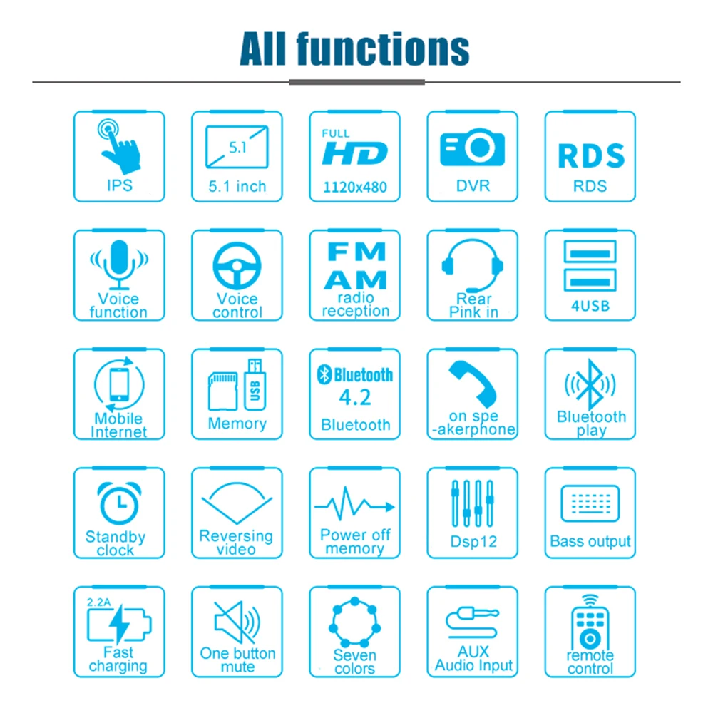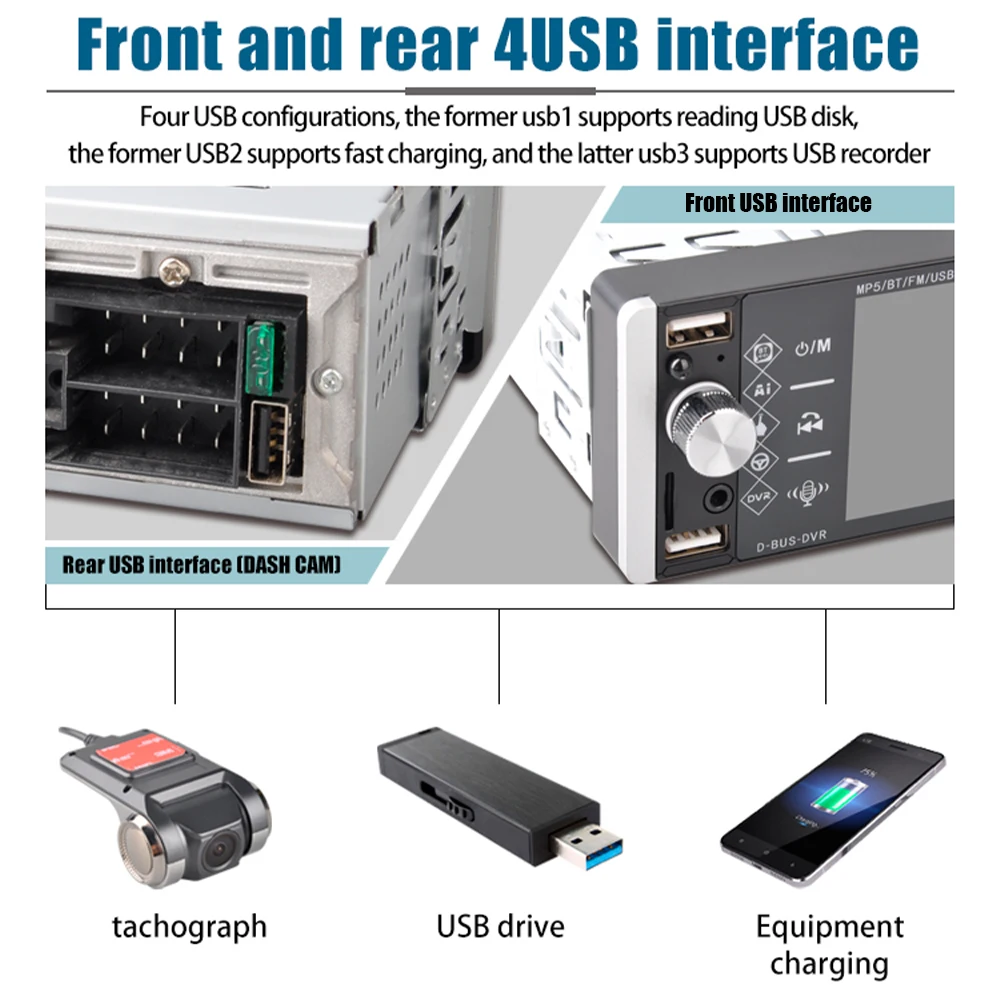 Автомагнитола Camecho 1 Din, универсальный MP5-плеер с сенсорным экраном, 4usb-порта, голосовым ассистентом, поддержкой Mirrorlink, Bluetooth, SD, DVR