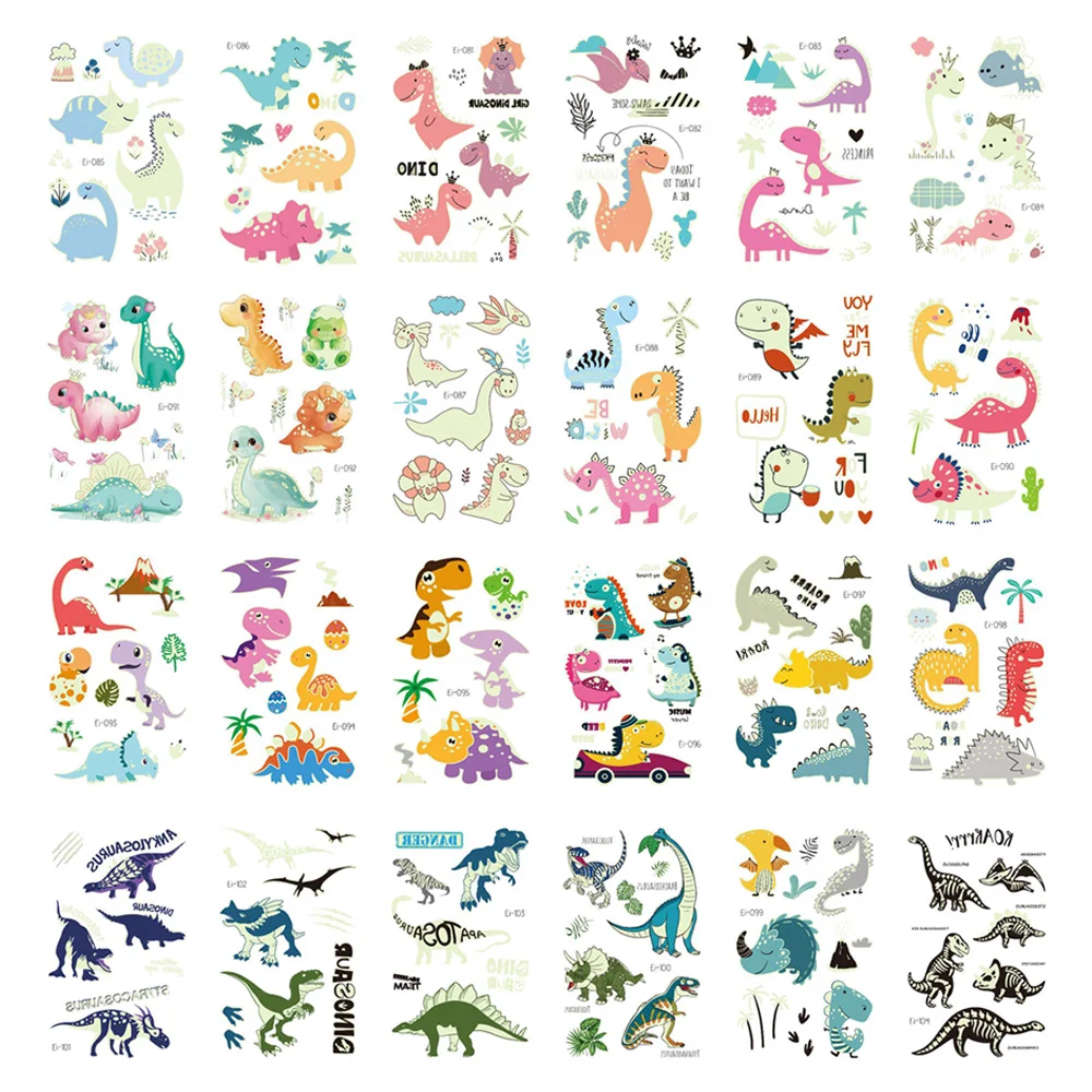 Светящиеся тату-наклейки в виде динозавра, Мультяшные Веселые светящиеся наклейки, временная татуировка, боди-арт для детей, украшения для дня рождения