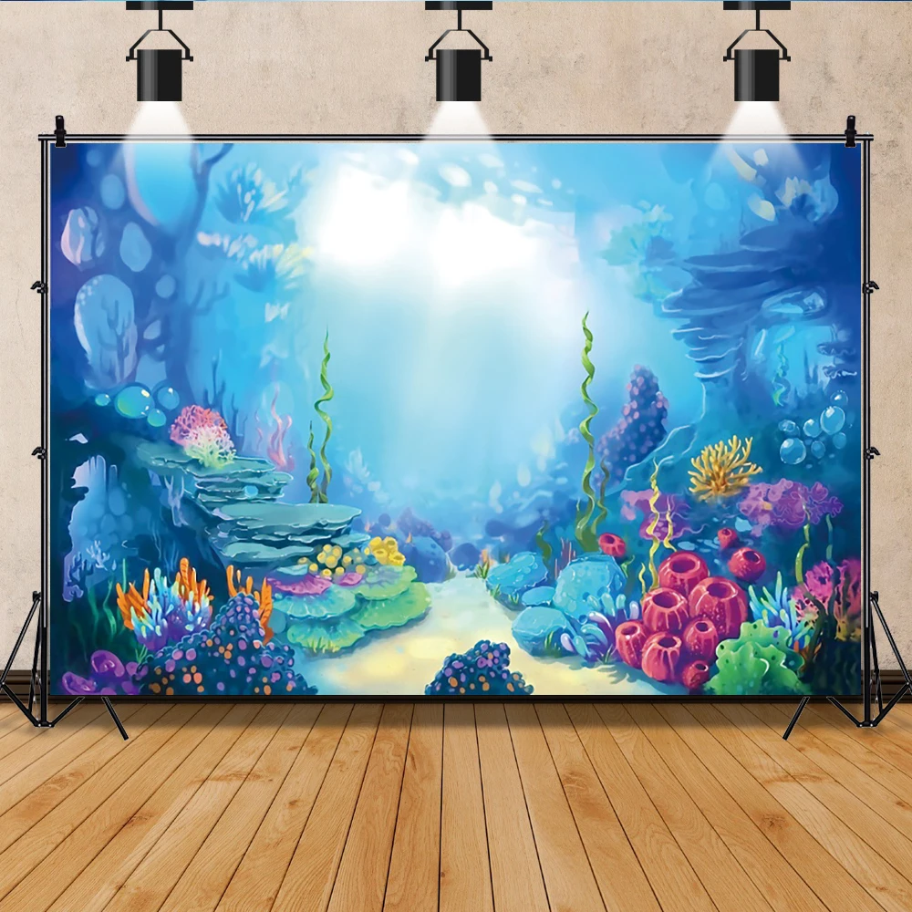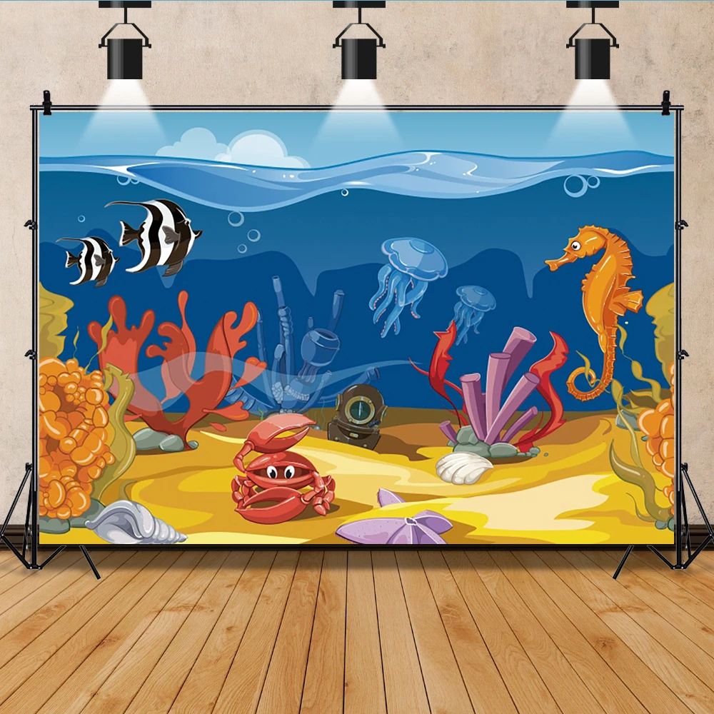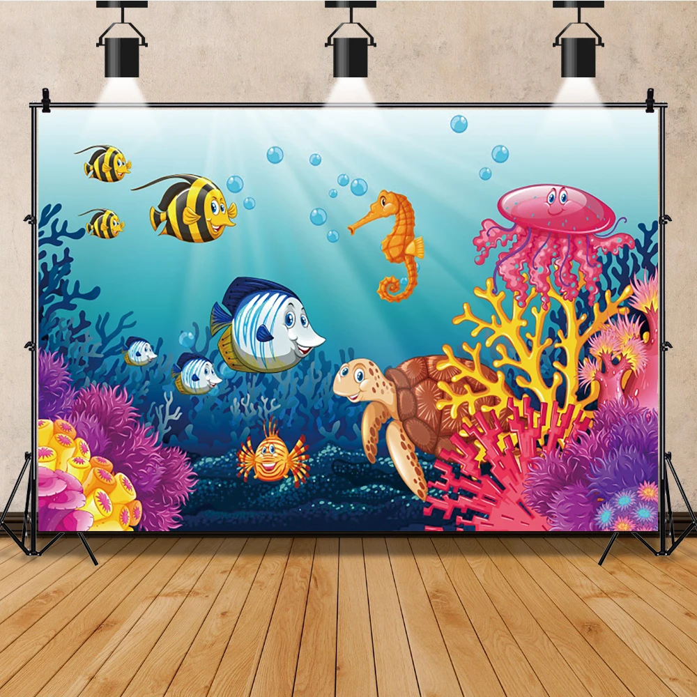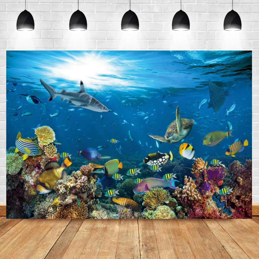 Фон для фотосъемки Laeacco с изображением подводного мира голубого моря тропических рыбок черепахи кораллов аквариума Лето декоративный фон