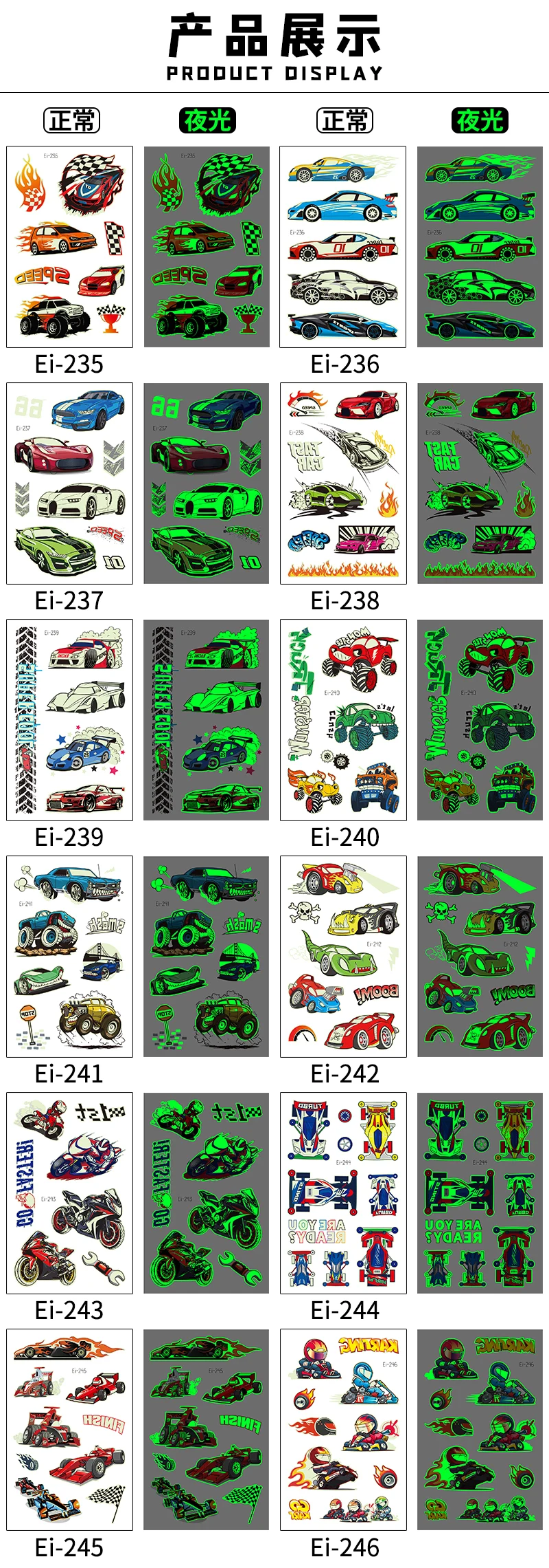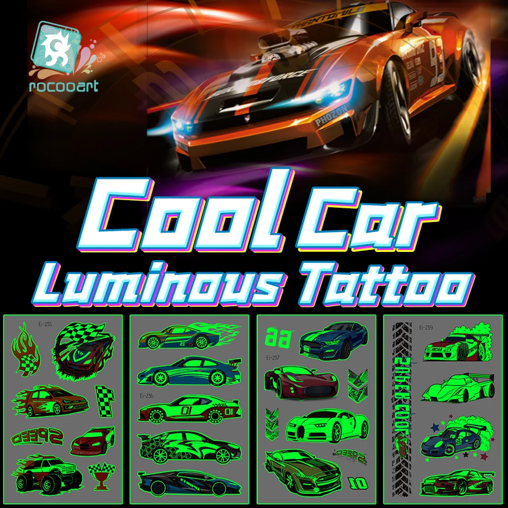 Светящаяся крутая Автомобильная Временная наклейка для татуировок для детей, поддельные татуировки для гоночной машины, спортивные водонепроницаемые светящиеся в темноте Детские тату