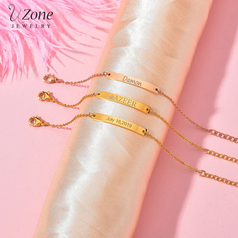 UZone выгравированное имя на заказ, детские браслеты из нержавеющей стали, индивидуальный браслет-цепочка, Femme, детский подарок на день рождения, браслеты