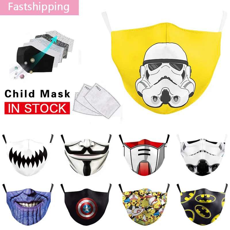 Новая детская маска с принтом героев моющаяся многоразовая защитная маска для рта PM2.5 фильтрующая Пылезащитная маска для лица унисекс детская хлопковая маска