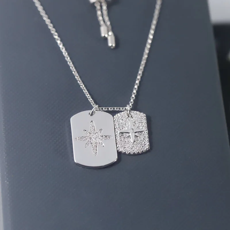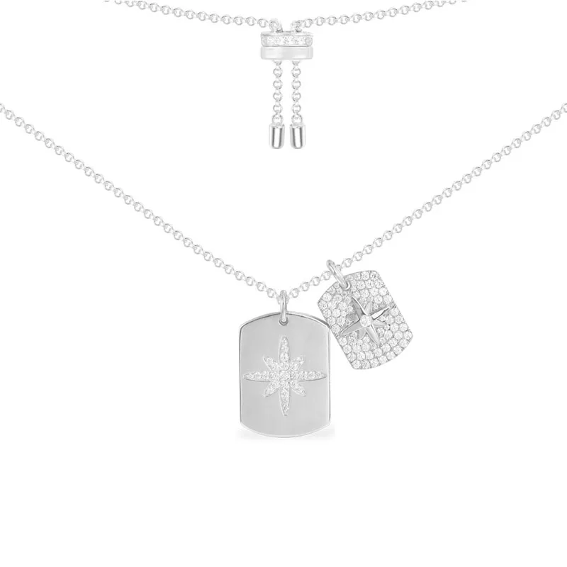 Высокое качество модные 925 стерлингового серебра двойной кулон с кулоном в виде звезды, ожерелье регулируемой длины (Micro циркония для женщин ювелирные изделия