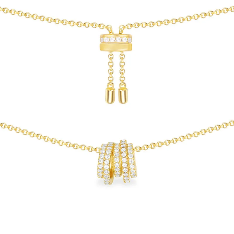 Мода чистый 925 стерлингового серебра желтое золото Цвет мульти-кольца круги ожерелье регулируемой длины (Micro 3A циркония для женщин ювелирные изделия