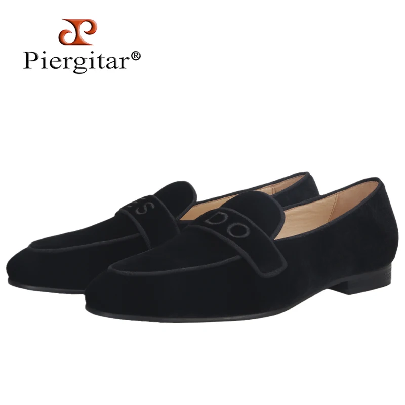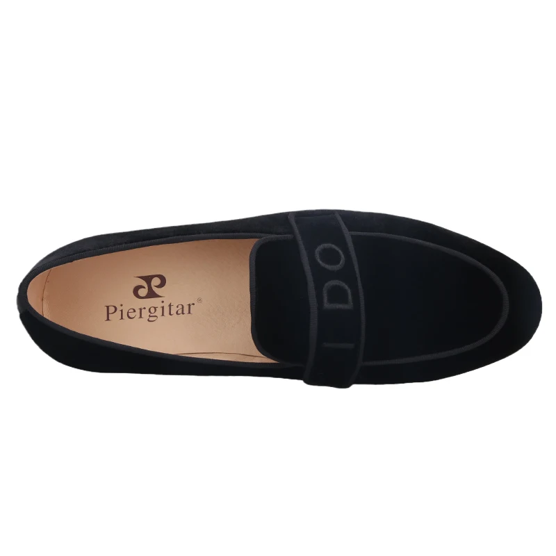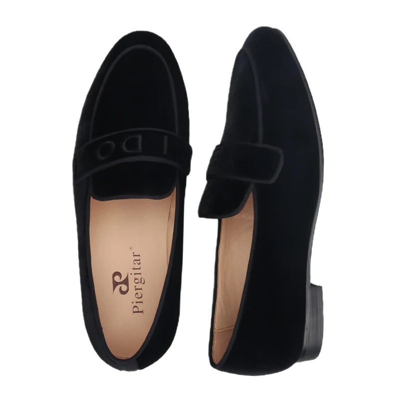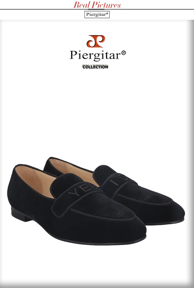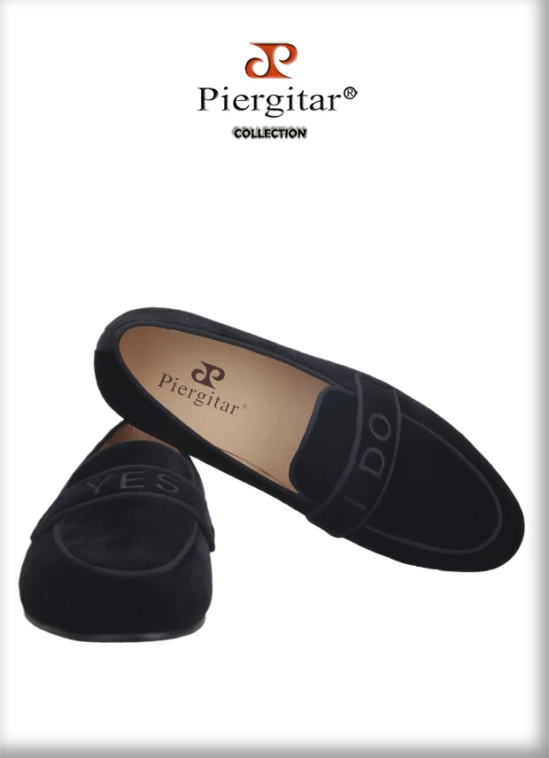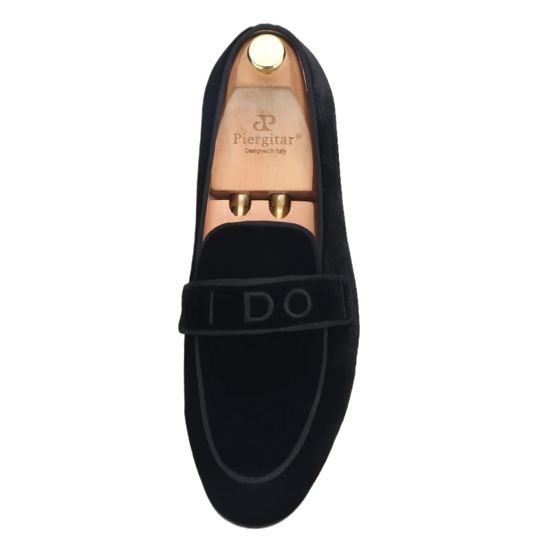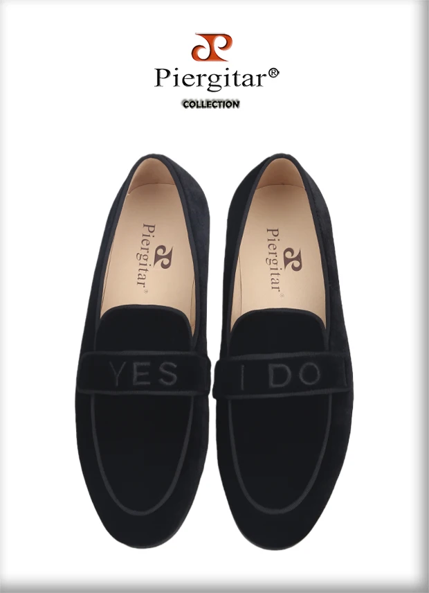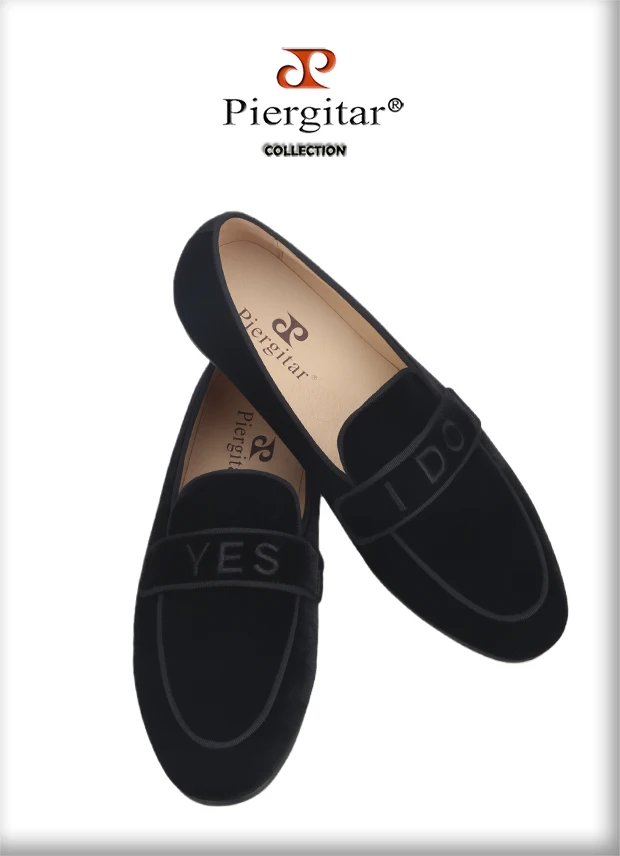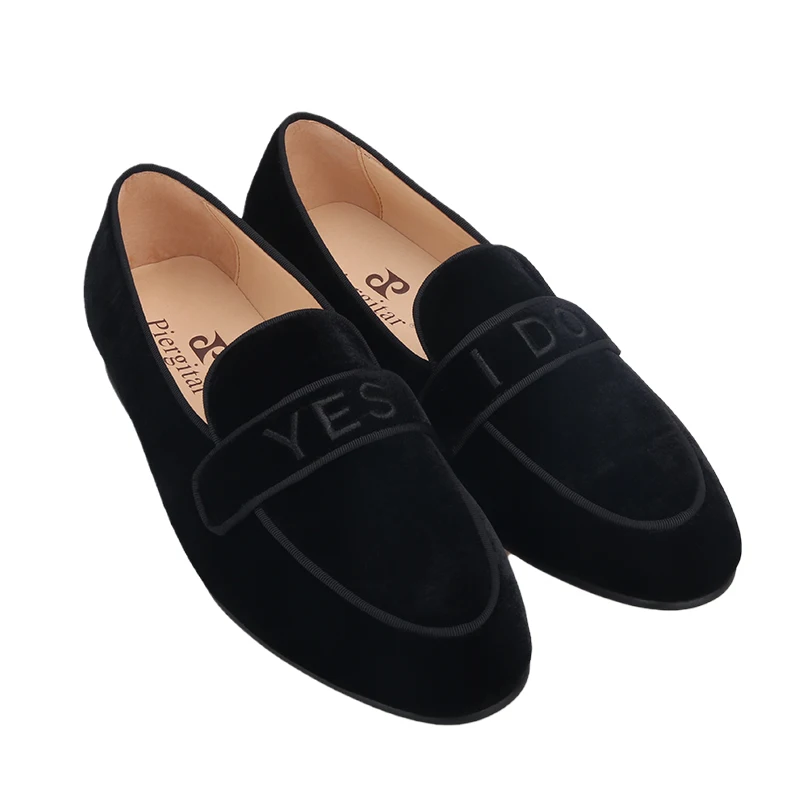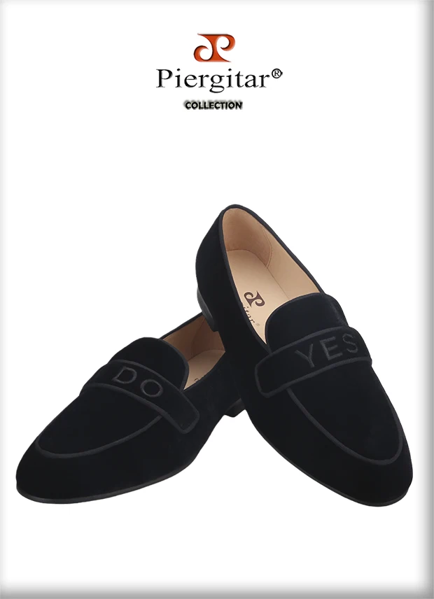 PiergitarНовые модные YES-I-DO вышитые черные бархатные Тапочки ручной работы мужские лоферы для свадьбы и вечерние размера плюс