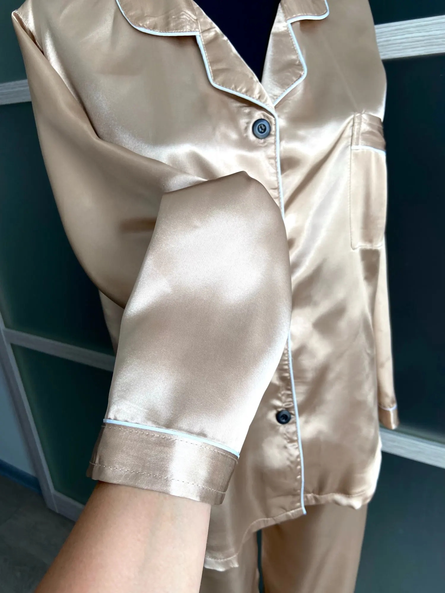 Женский Атласный пижамный комплект, элегантная повседневная одежда для сна, домашняя одежда
